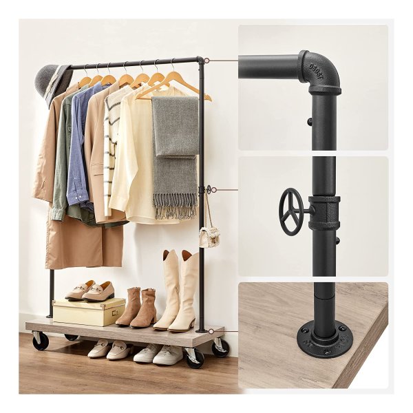 Geïnspireerd door de industriële stijl, zal dit kledingrek een unieke touch aan je huis geven.