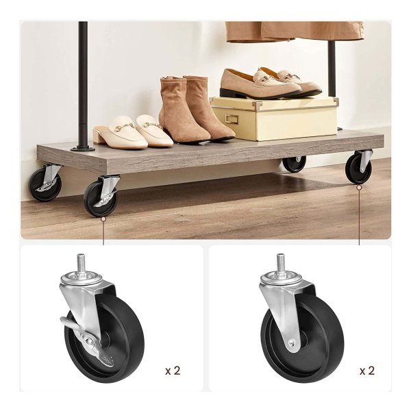 Kapstok, Kledingstang Tot 90 Kg, Met Legplank, Vergrendelbare Wielen, İndustrieel Ontwerp, Woonkamer, Hal, Grijs-Zwart