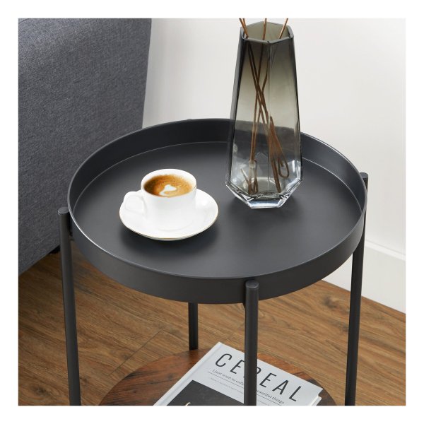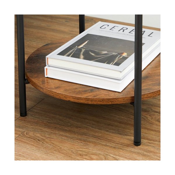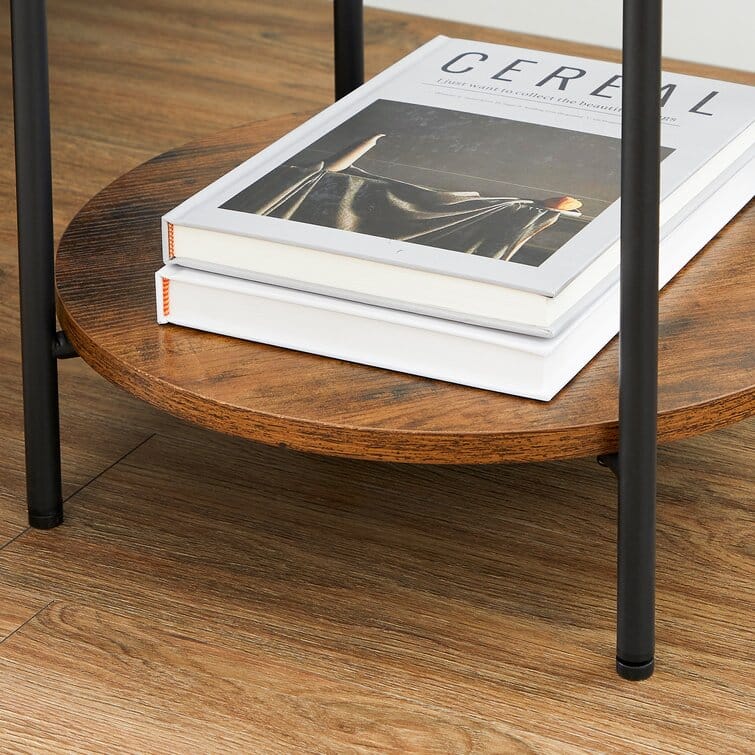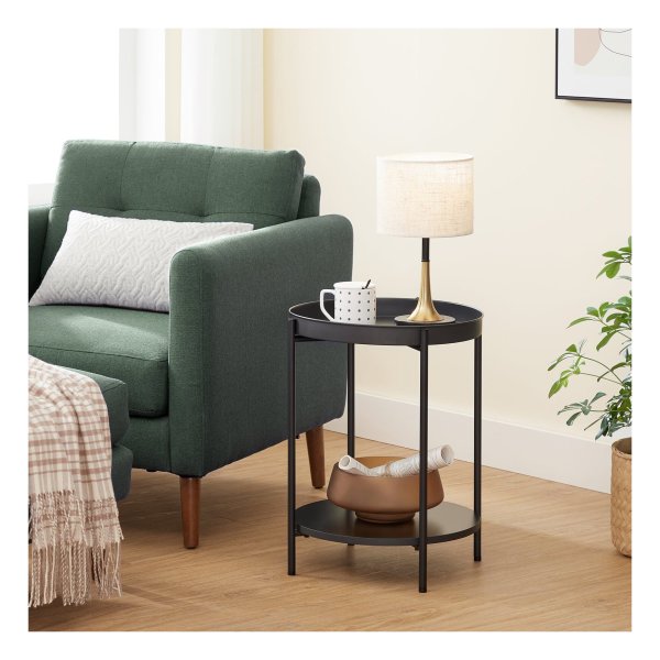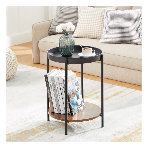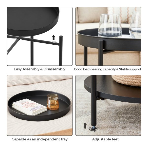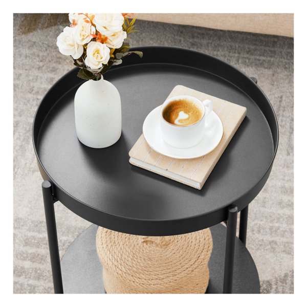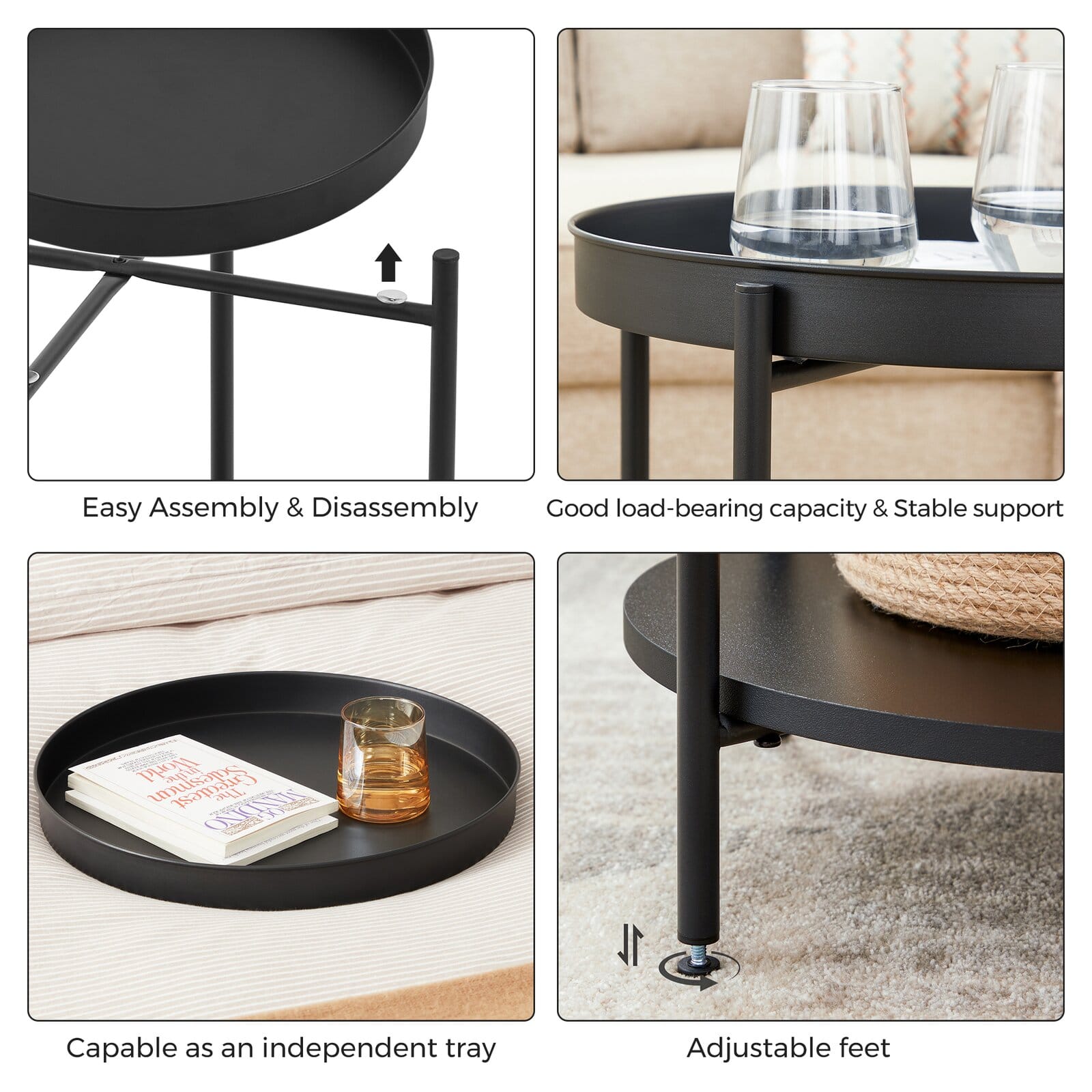 Salontafel Met 2 Planken, Ronde Bank Bijzettafel Met Verplaatsbaar Blad, Salontafel, Metalen Frame, Voor Woonkamer En Slaapkamer, Zwart