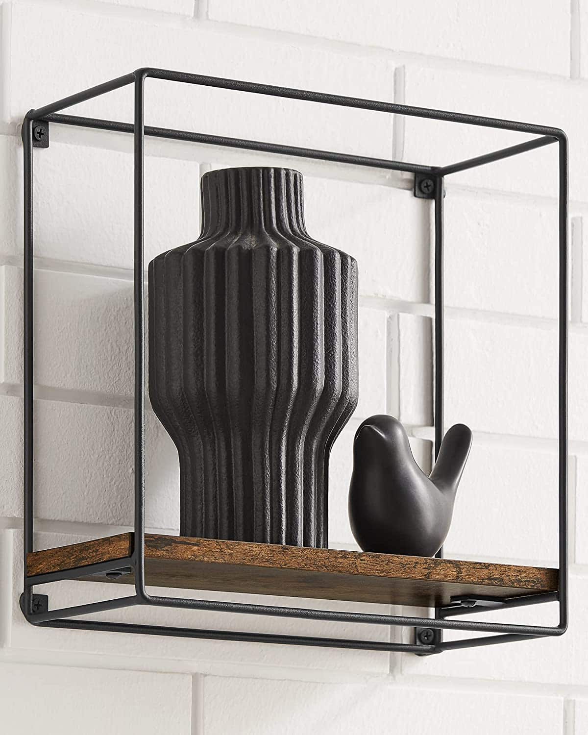 Wandrek, Set Van 3, Wandplank, Zwevende Plank, Metalen Frame, Vintage Bruin-Zwart