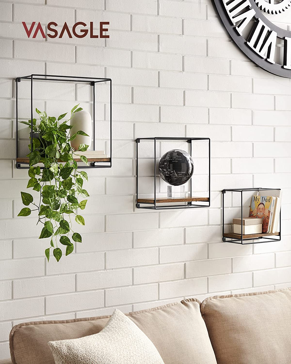 Wat je krijgt: 3 wandrekken in industrieel design in verschillende maten met accessoirepakket en een duidelijke handleiding die je lege muren verfraait