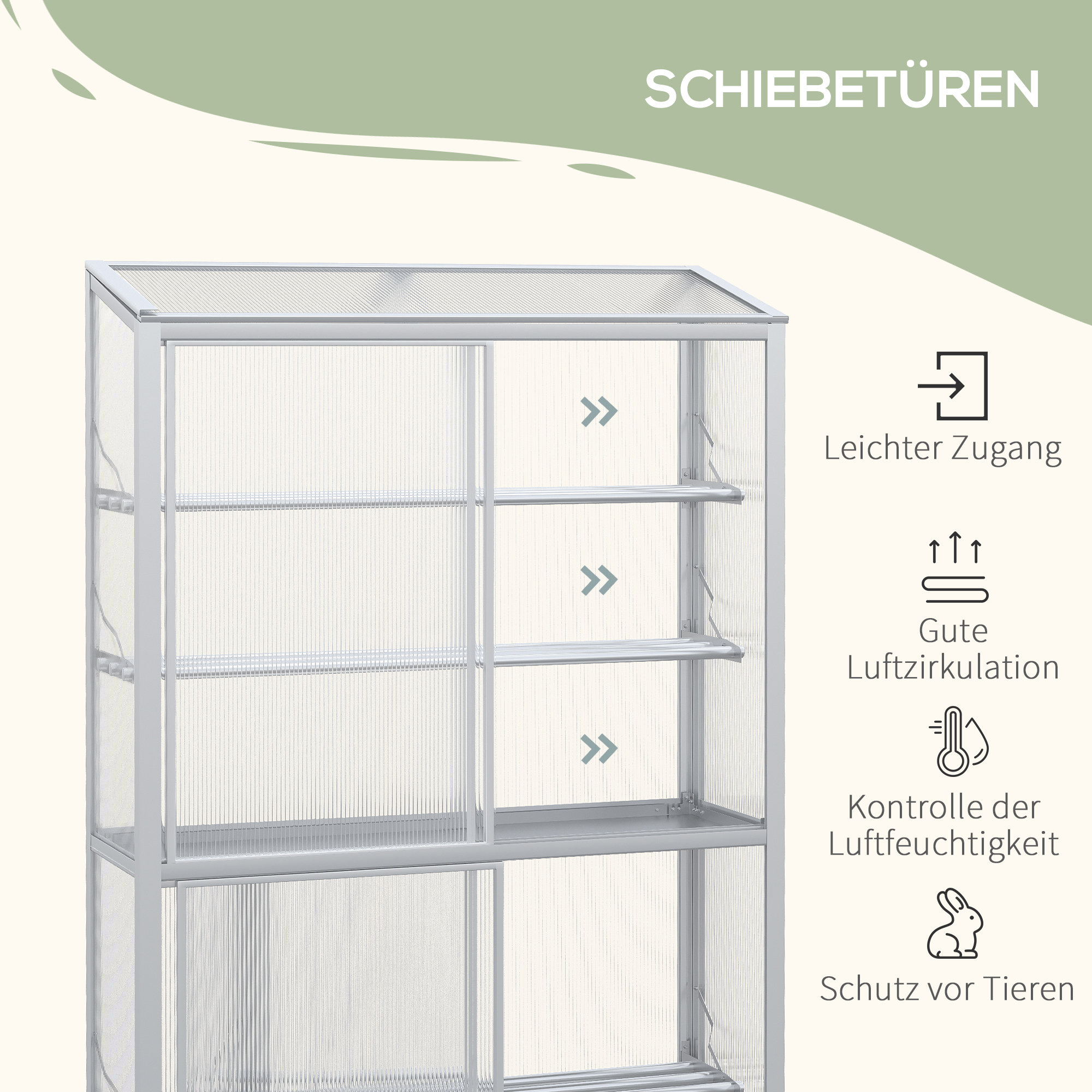 - De schuifdeur biedt gemakkelijke toegang tot de kas voor het verzorgen van uw planten.