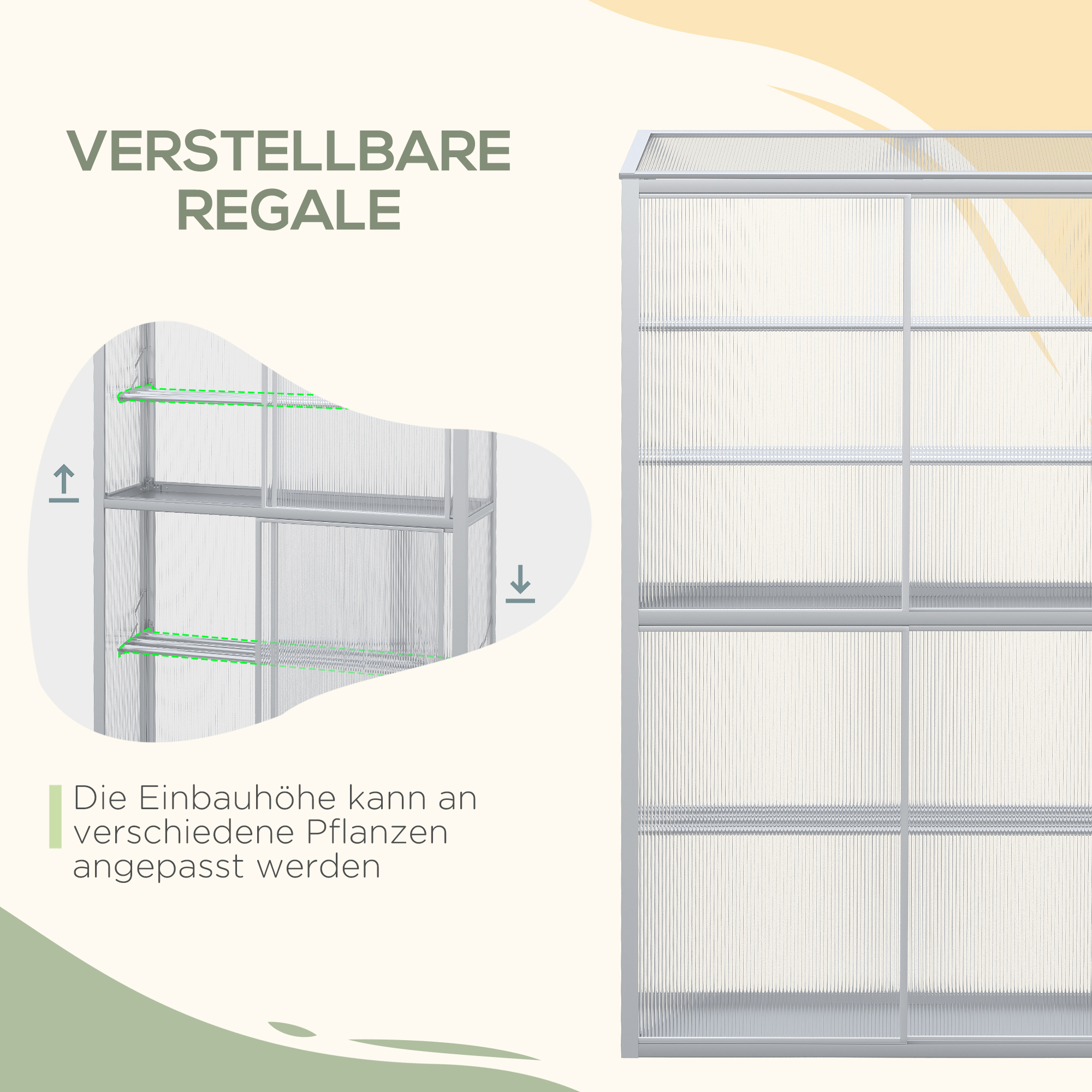 | Bullet Point 2 | De plankhoogte kan eenvoudig worden aangepast aan de hoogte van de planten |