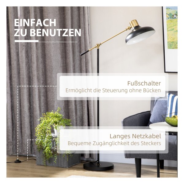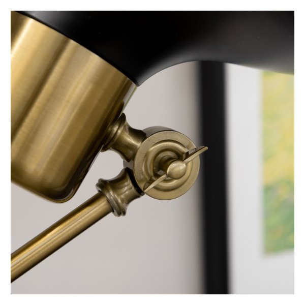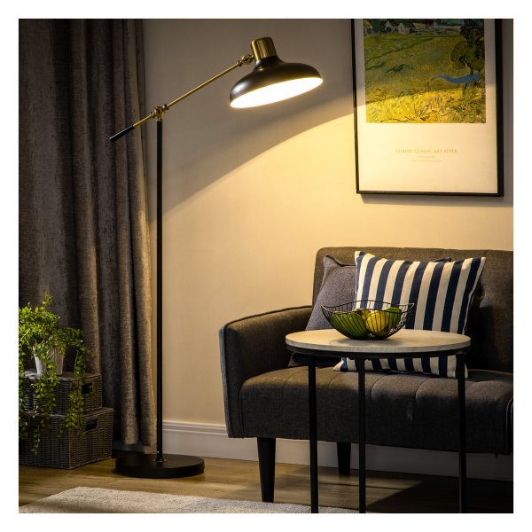 De vloerlamp is vervaardigd uit hoogwaardig metaal in een elegante zwarte kleur. Met afmetingen van 80L x 30B x 124-165H cm zorgt de lamp voor voldoende verlichting in elke ruimte. De E26 fitting maakt het eenvoudig om een lamp van maximaal 40W te installeren voor helder en sfeervol licht.