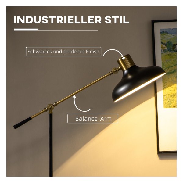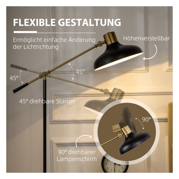 Bullet Point 1 | Industrieel ontwerp: Deze vloerlamp in industrieel design heeft een zwarte en gouden afwerking om moderne stijl toe te voegen aan elke kamer die extra licht nodig heeft. Flexibel ontwerp: Deze leeslamp heeft een flexibel 45° draaibaar frame, een 90° draaibaar frame, lampenkap en een verstelbare hoogte om gemakkelijk verander de verlichtingshoeken Hoogwaardig materiaal: Gemaakt van metaal voor stabiliteit, uw dierenfamilie of kind zal deze vloerlamp niet gemakkelijk omver kunnen gooien |