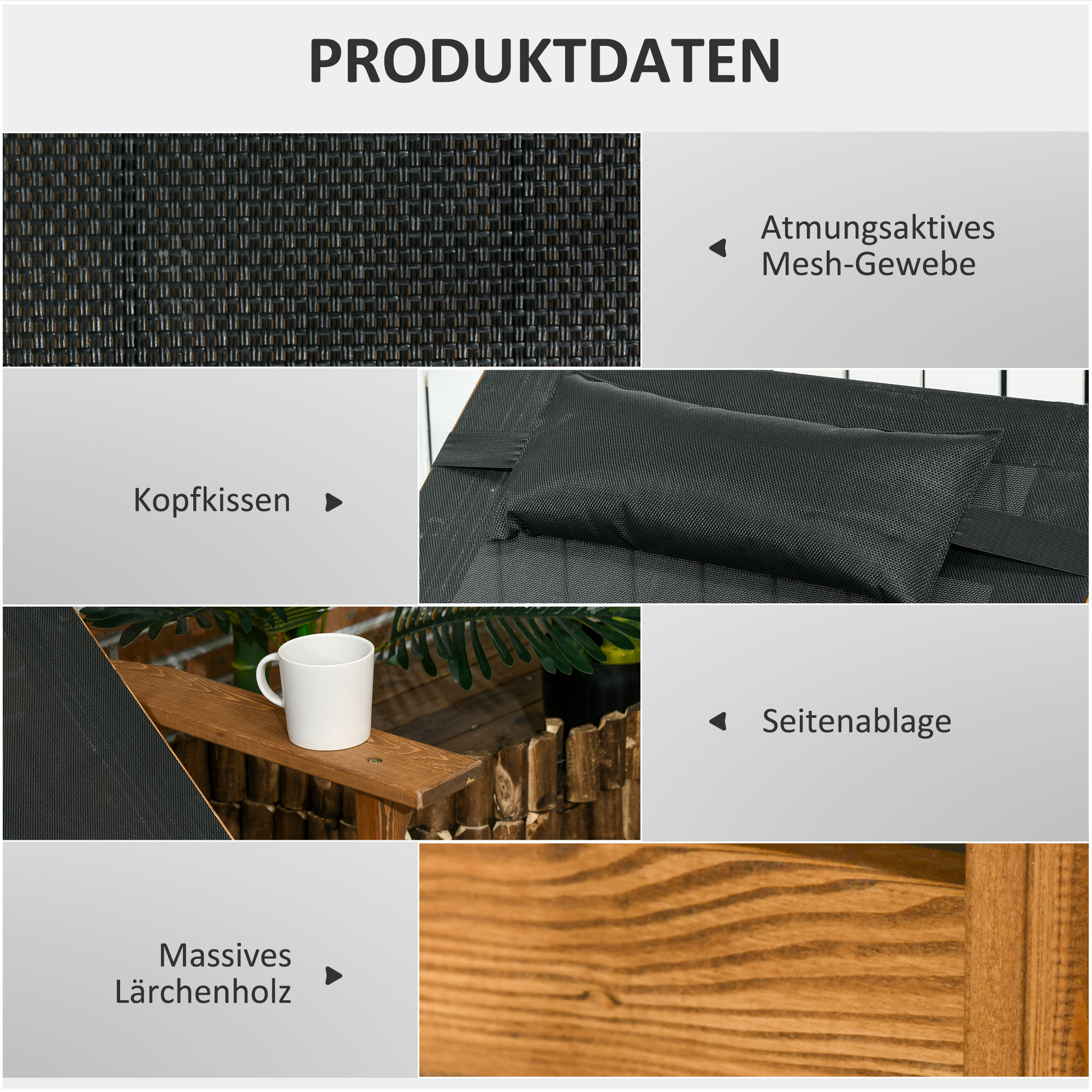 | Bullet Point 2 | U kunt rechtop zitten, achterover leunen of zelfs plat liggen – ideaal om te zonnebaden, lezen of een dutje te doen |