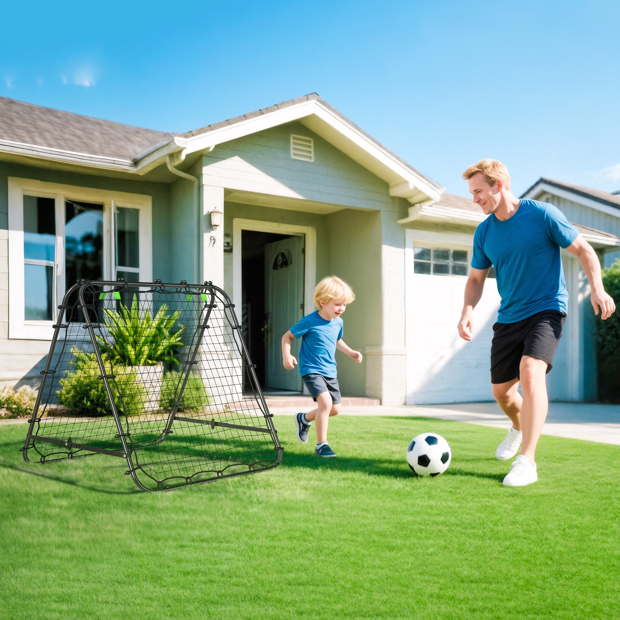 Innovatieve, verstelbare voetbaldoel rebounder van zwart staal. Verbeter hand-oogcoördinatie en train nauwkeurigheid. Opvouwbaar en makkelijk transporteerbaar voor diverse sporttrainingen.