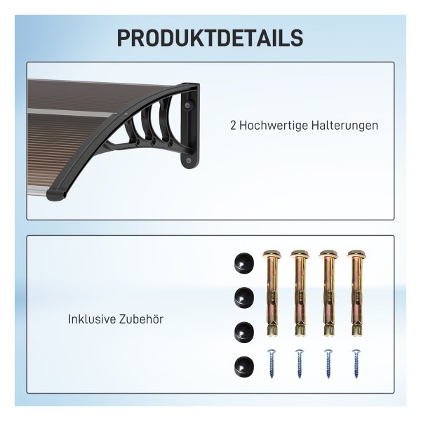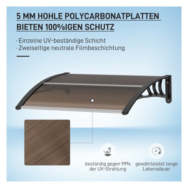 - • Elegant design: de bruine kleur geeft het afdak een luxe uitstraling die perfect past bij iedere woningstijl.