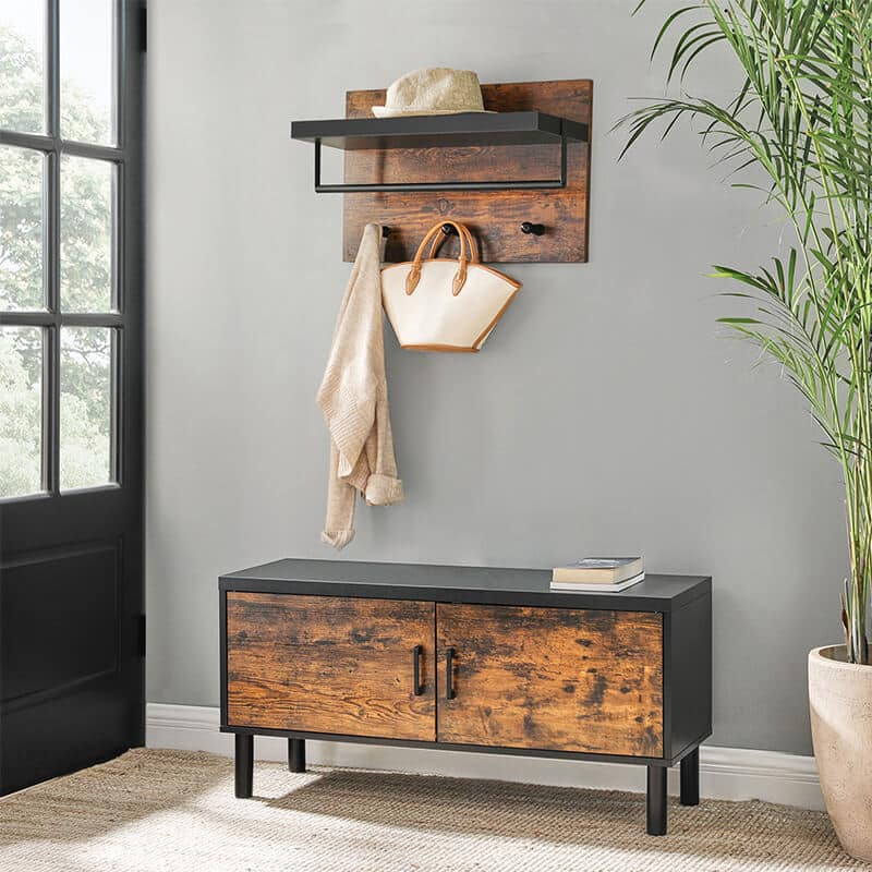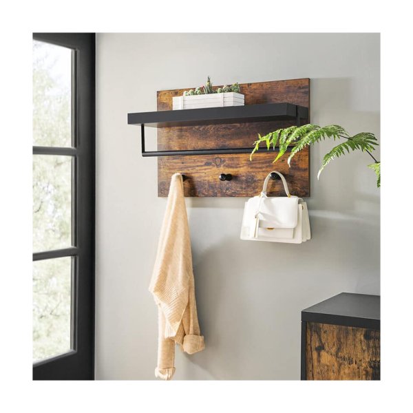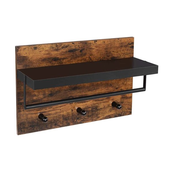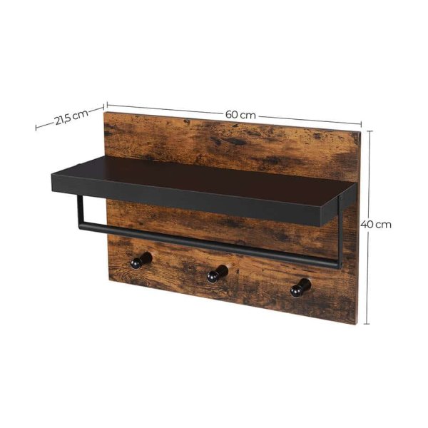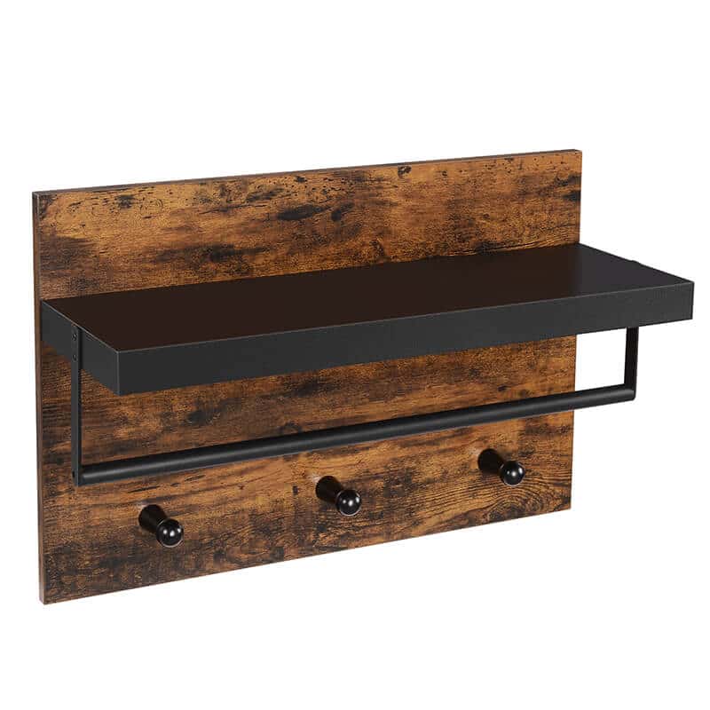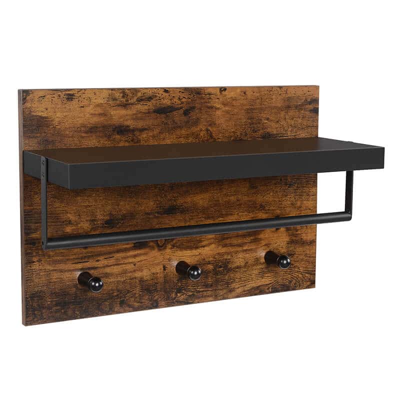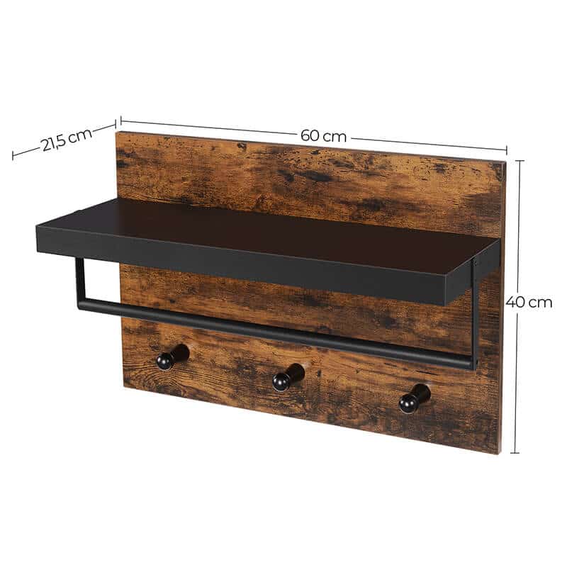 Wandkapstok, wandplanken, kapstokpaneel, met 3 haken, rustiek bruin