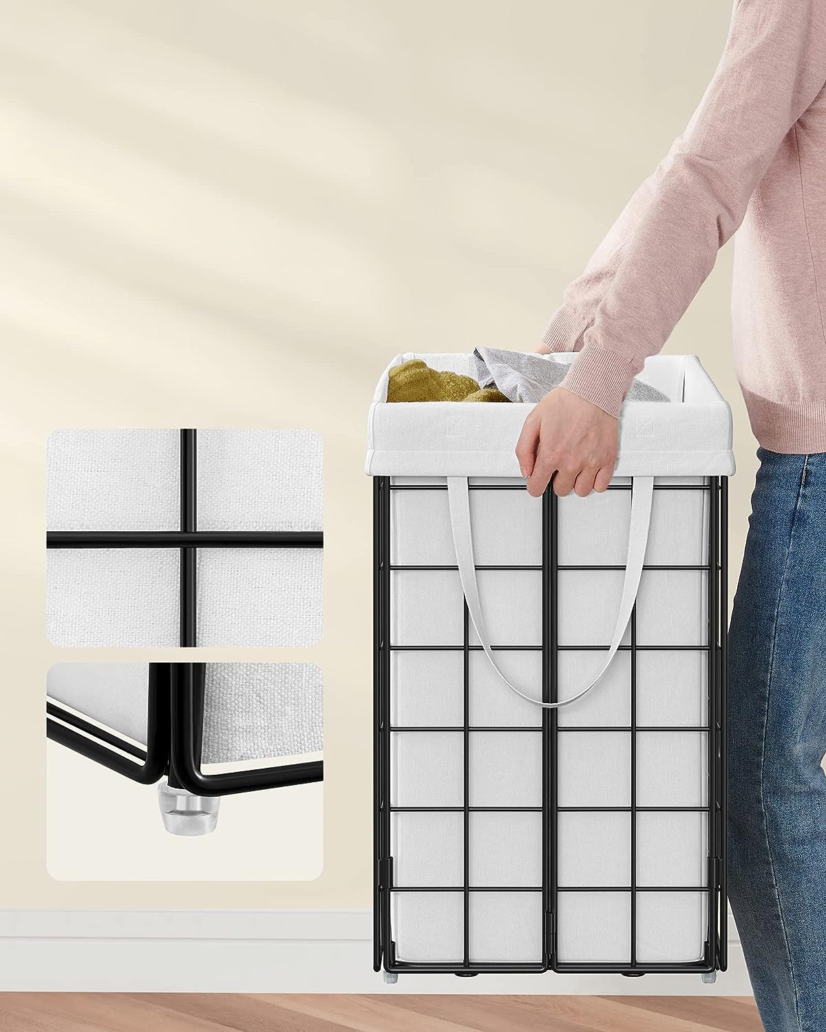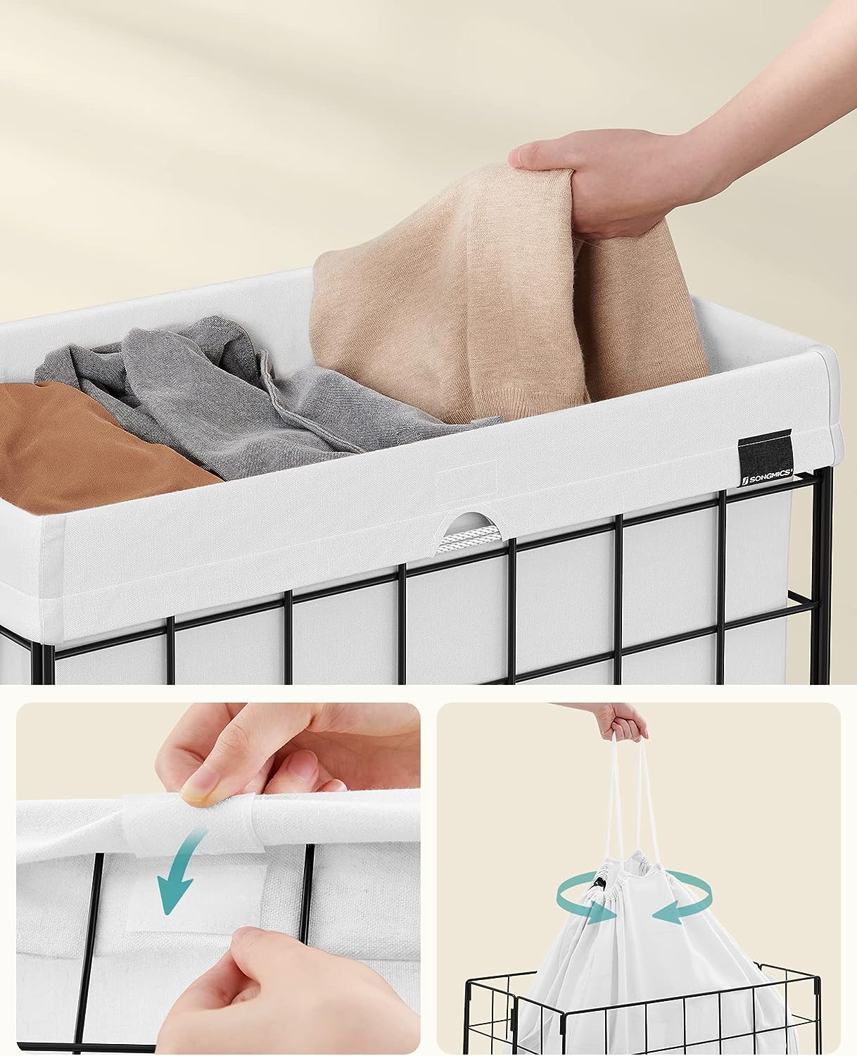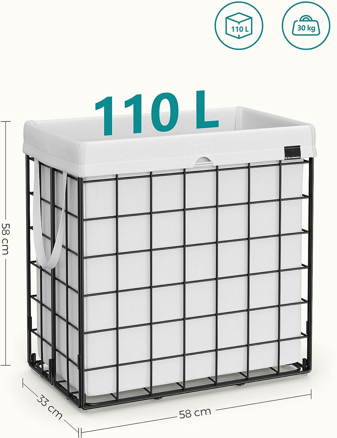 Tags: 110 L, LCB111W01, metalen draadframe, opvouwbare wasopvangbak, wasbare waszak, wasmand, wit, zwart