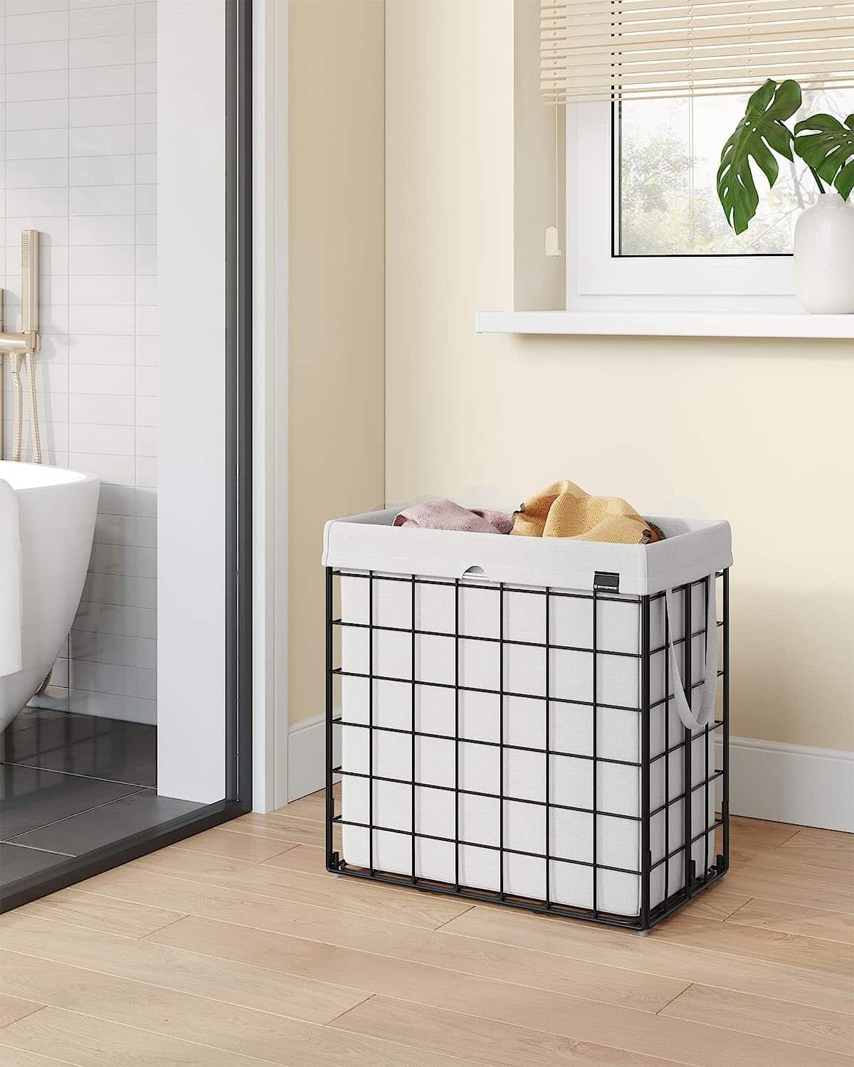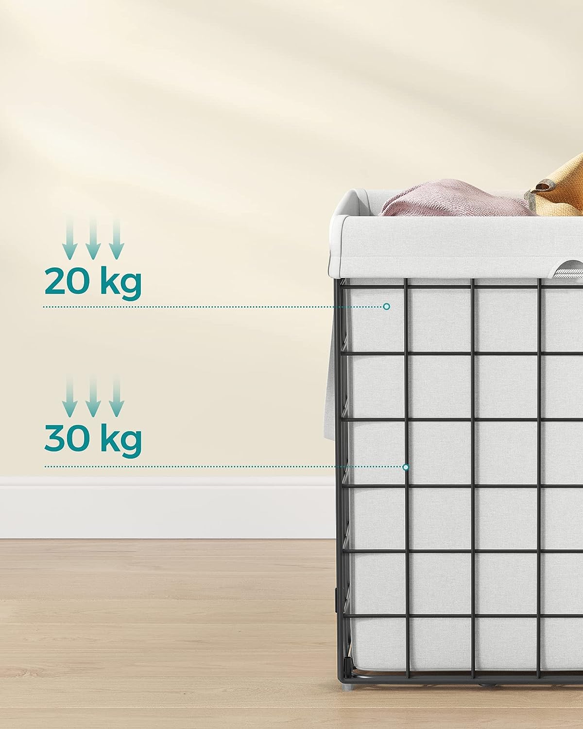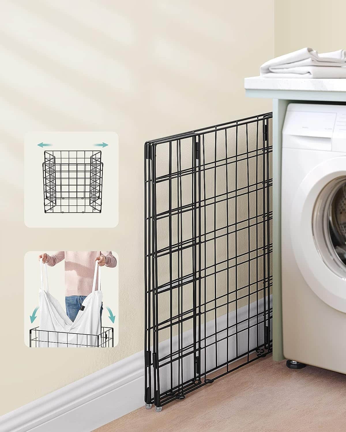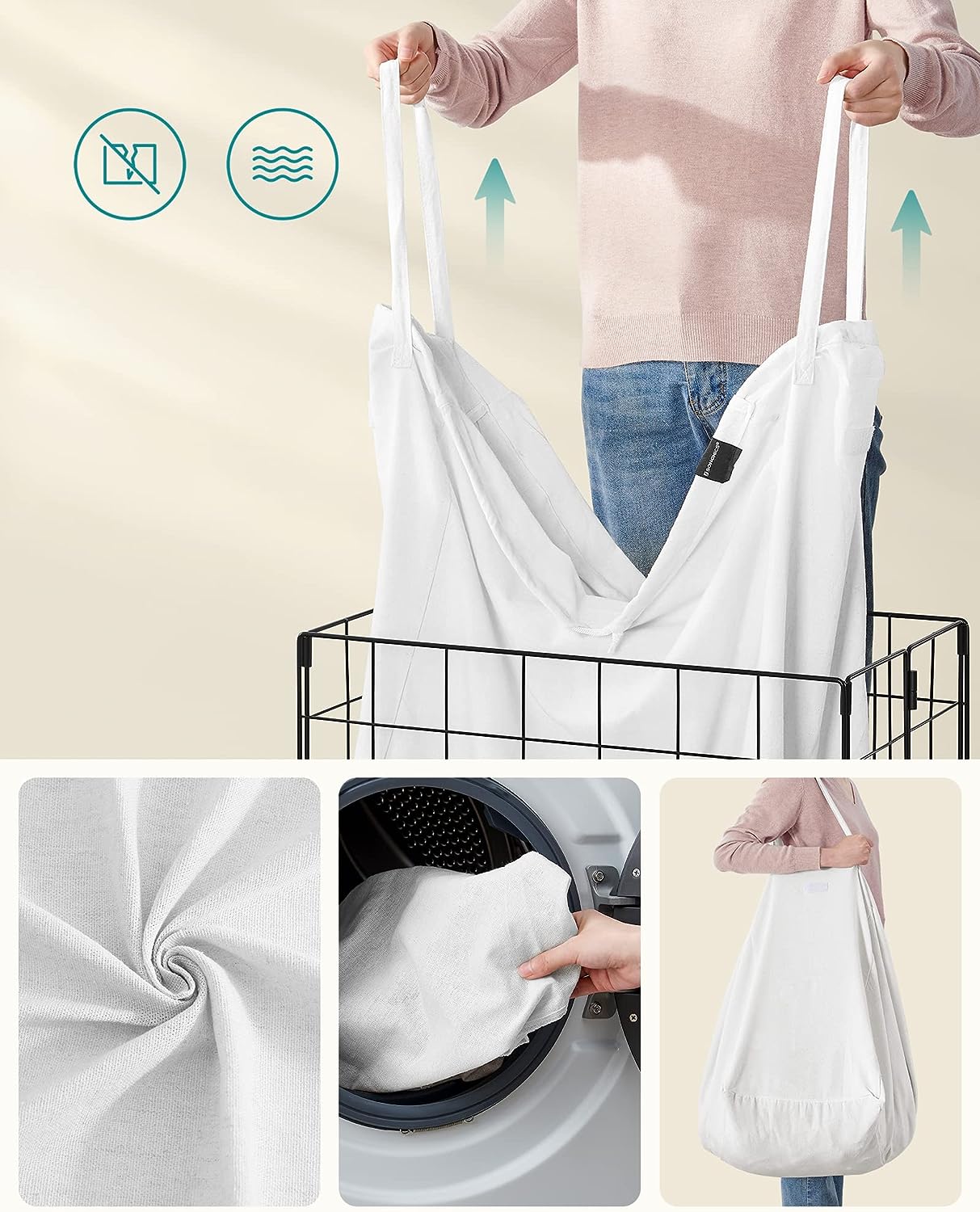 Tags: 110 L, LCB111W01, metalen draadframe, opvouwbare wasopvangbak, wasbare waszak, wasmand, wit, zwart