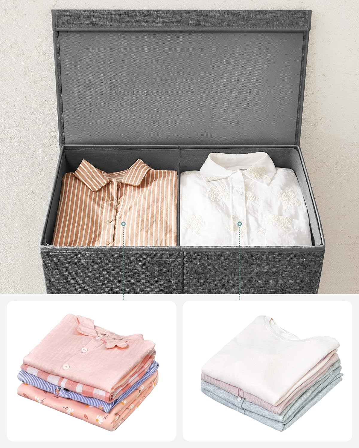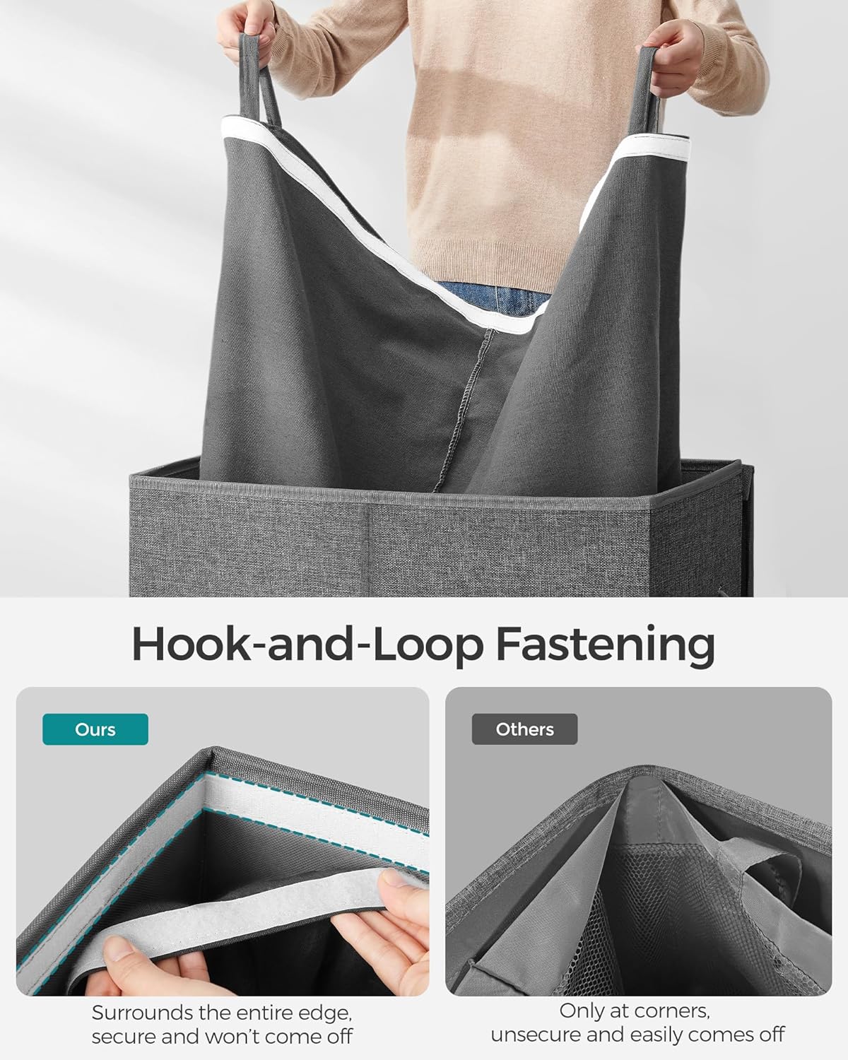 Wasmand, 142 L, met 2 vakken van linnen, kledingscheiding met magnetisch deksel en handgrepen, opvouwbaar, afneembare binnenzak, donkergrijs