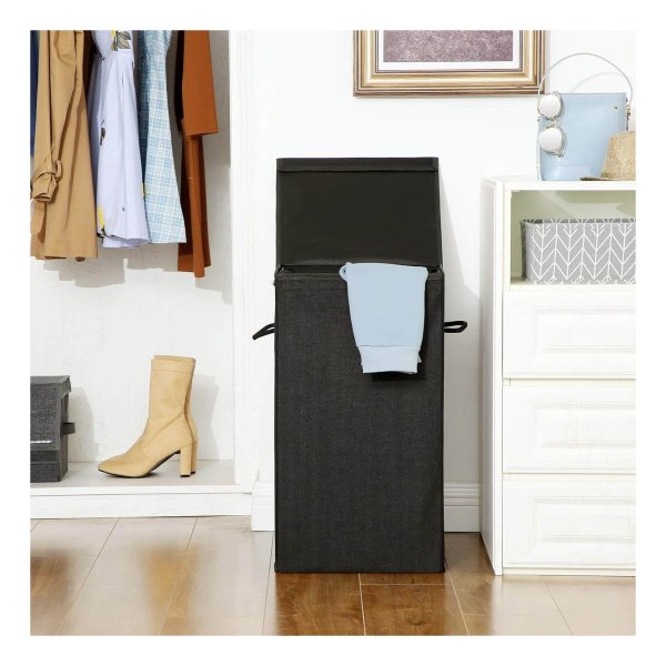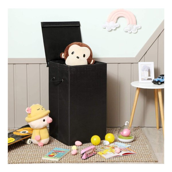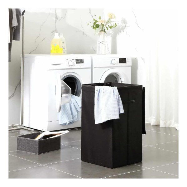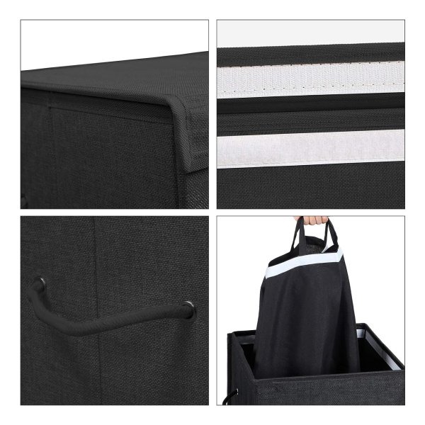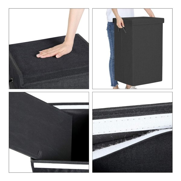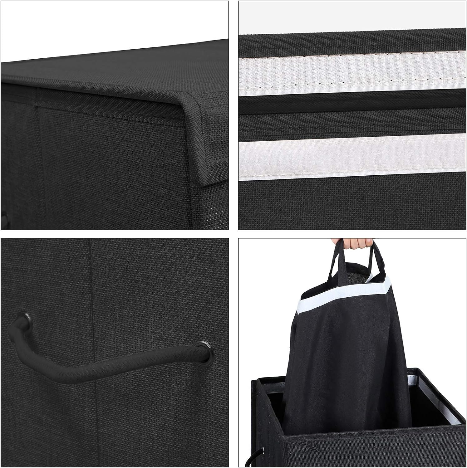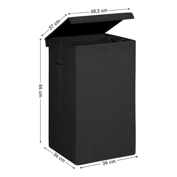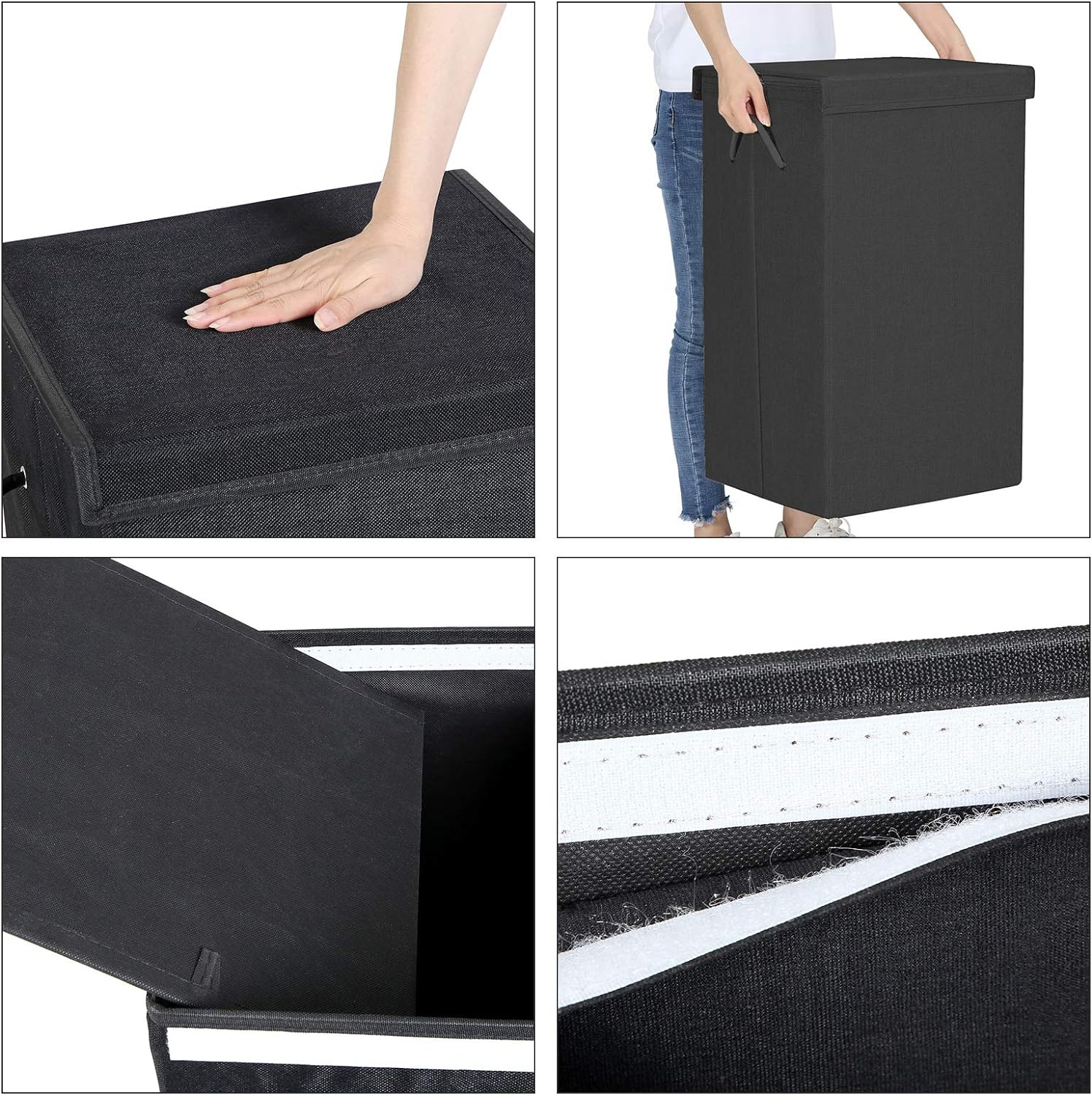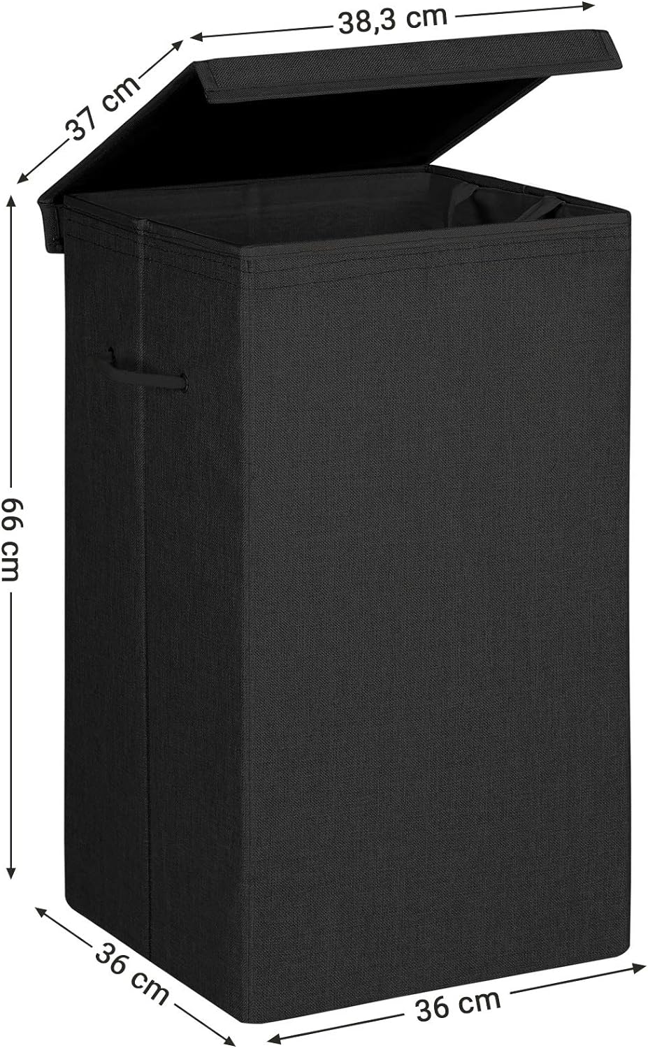 Wasmand, 85 L, wasverzamelaar van imitatielinnen, waskist met magnetisch deksel en handvat, opvouwbaar, waszak afneembaar, zwart