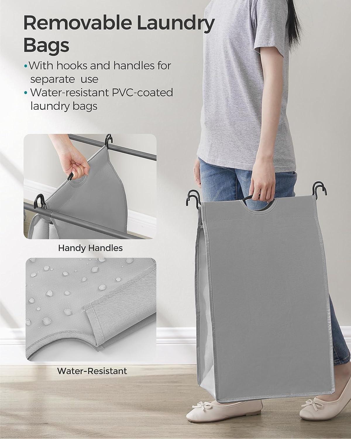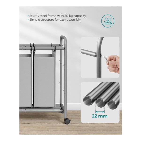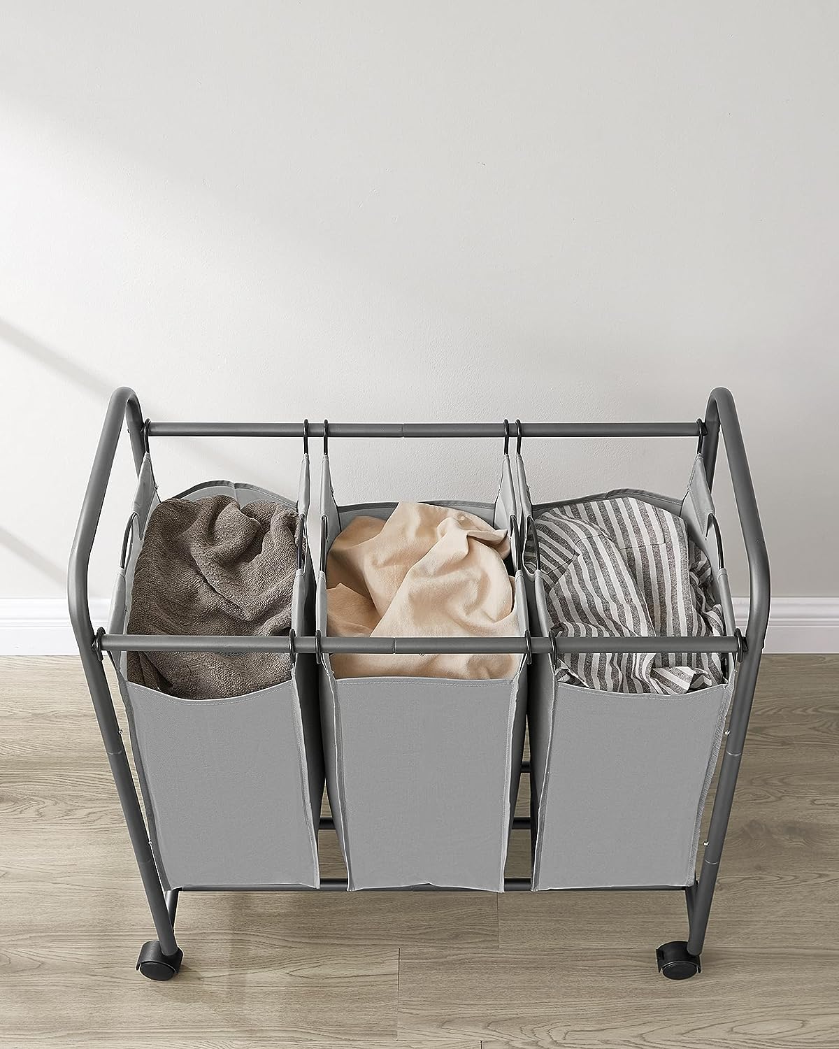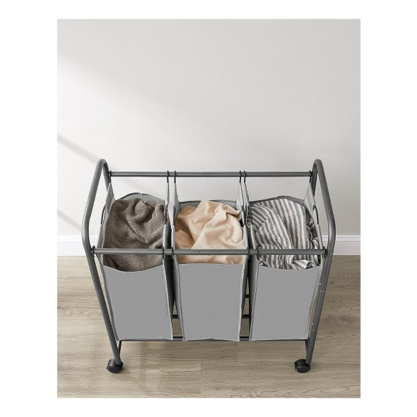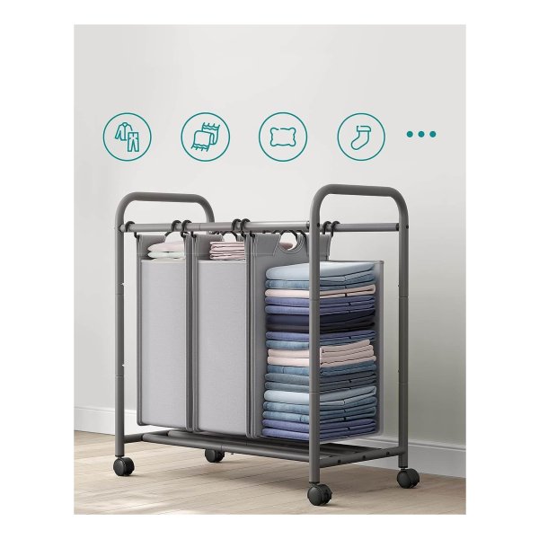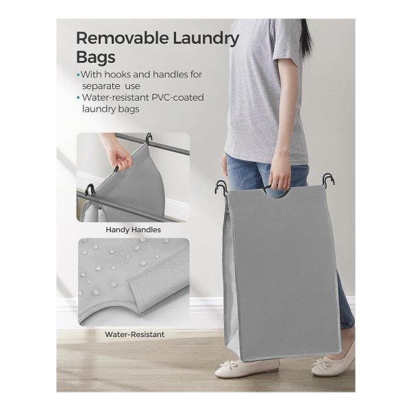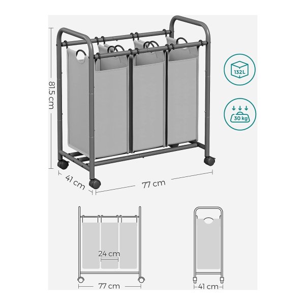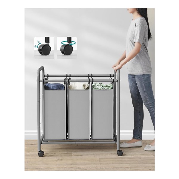 Tags: 3 x 44 liter, Grijs, LSF003GS, met 3 uitneembare stoffen zakken, Wasmand op wielen, wasopvangbak, wasscheider