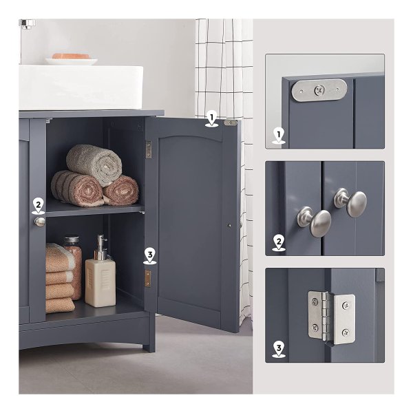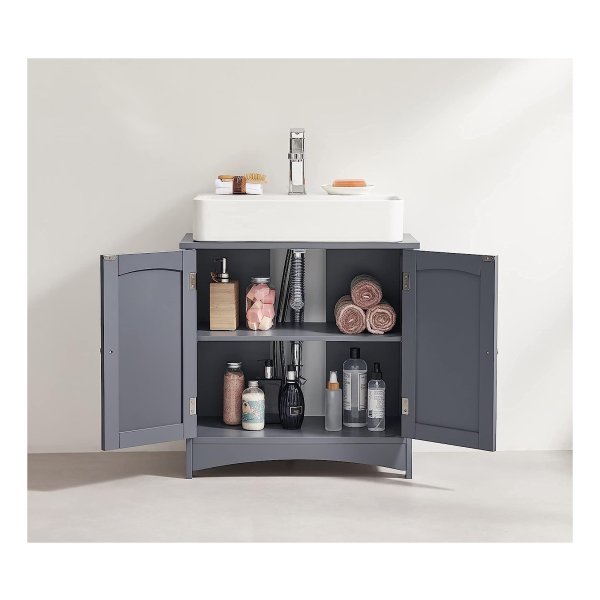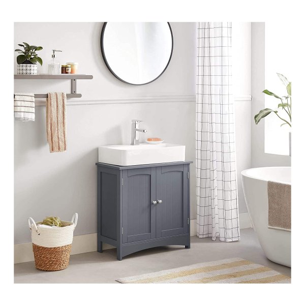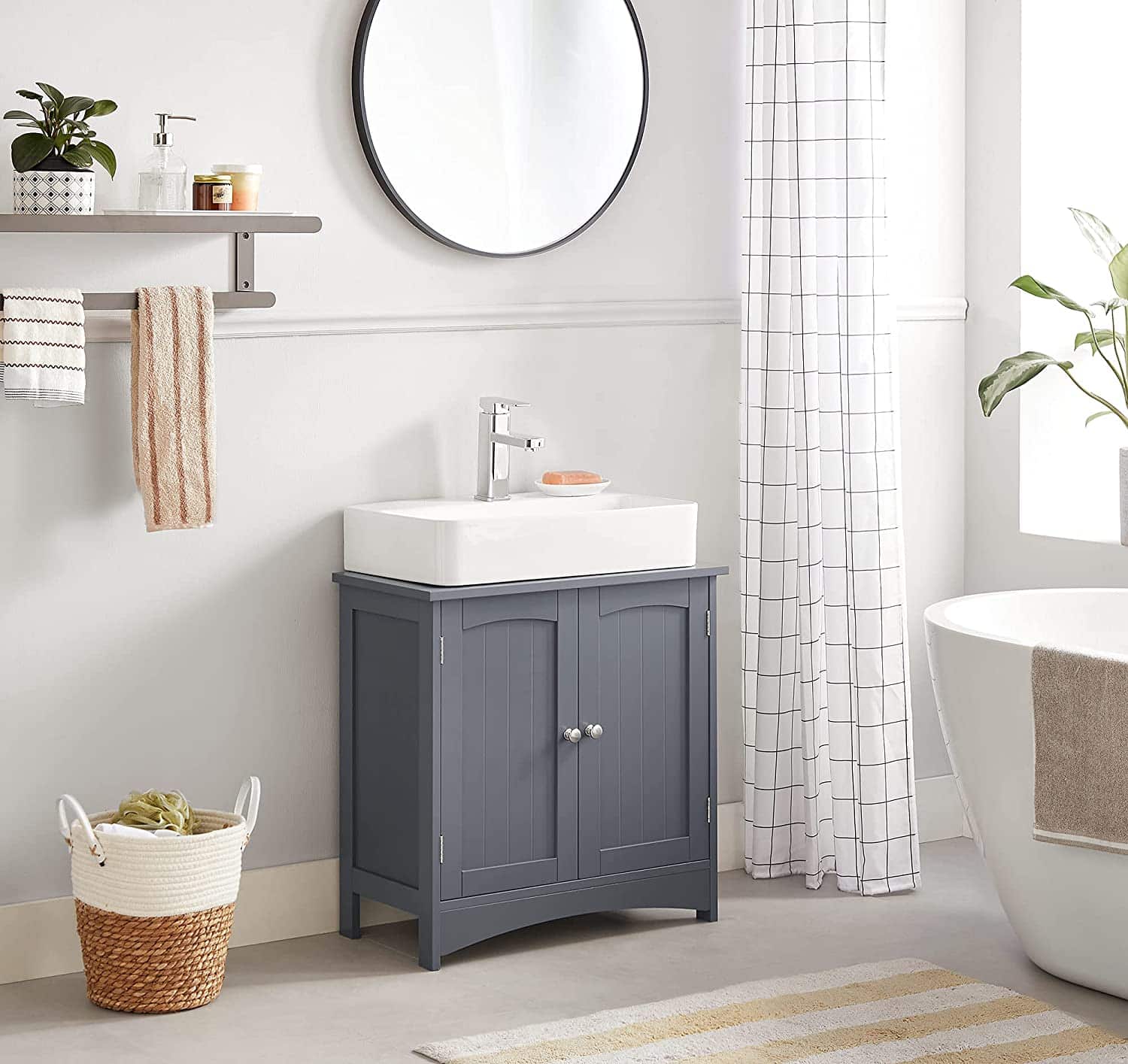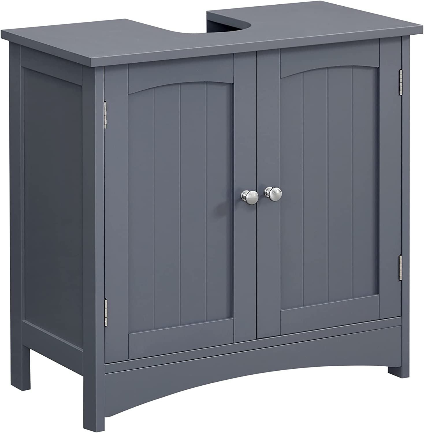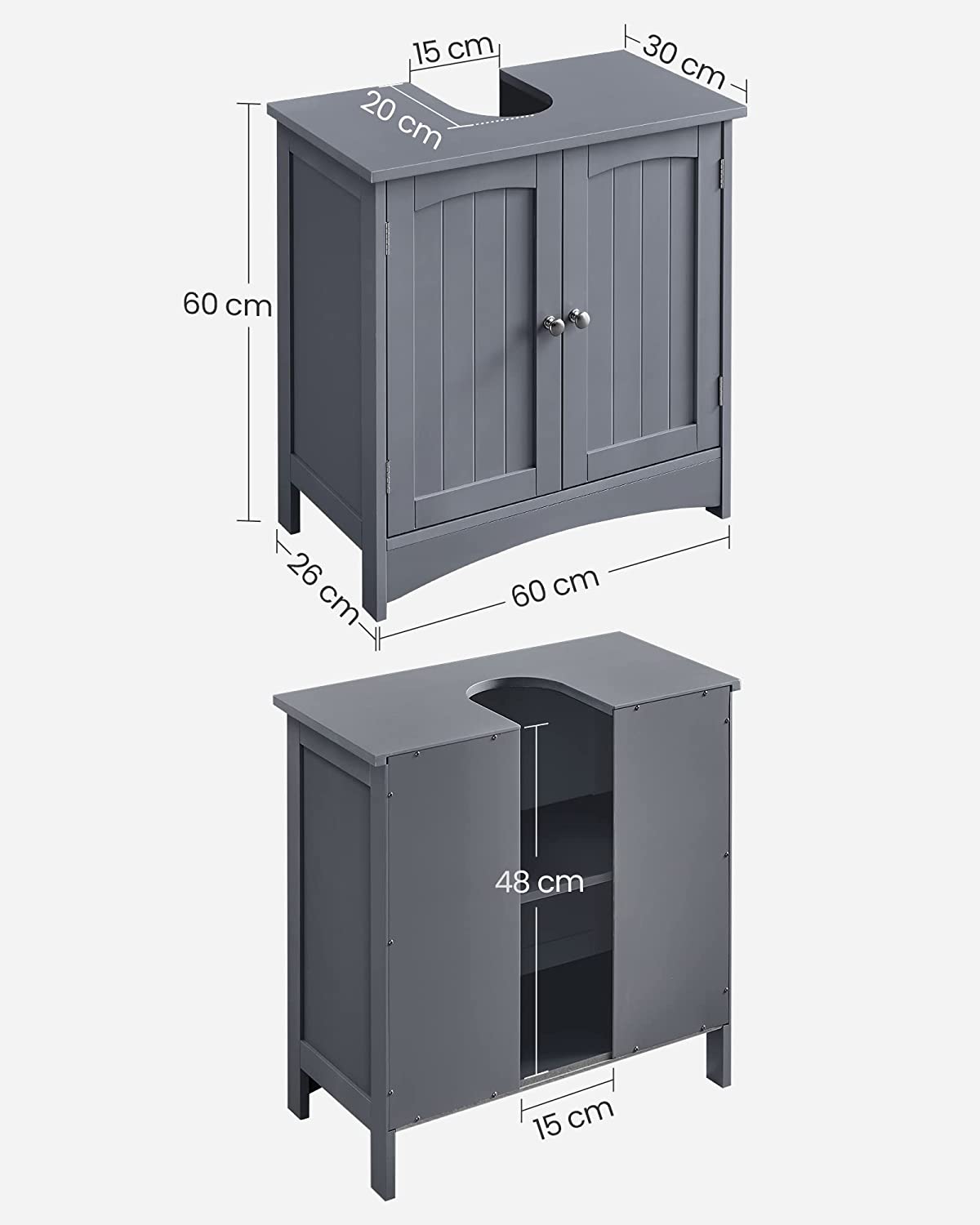 Grijze Wastafelonderkast Met 2 Deuren, Verstelbare Plank En Veel Opbergruimte – Landelijke Stijl, 60 X 30 X 60 Cm