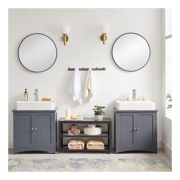 - Deze wastafelonderkast is een stijlvolle en functionele toevoeging aan uw badkamer. De kast is gemaakt van duurzaam materiaal en heeft een stevige constructie. De twee deuren bieden veel opbergruimte voor uw badkameraccessoires. De verstelbare plank biedt extra ruimte voor uw spullen. De kast heeft een landelijke stijl en een mooie grijze kleur die perfect past bij uw badkamer.
