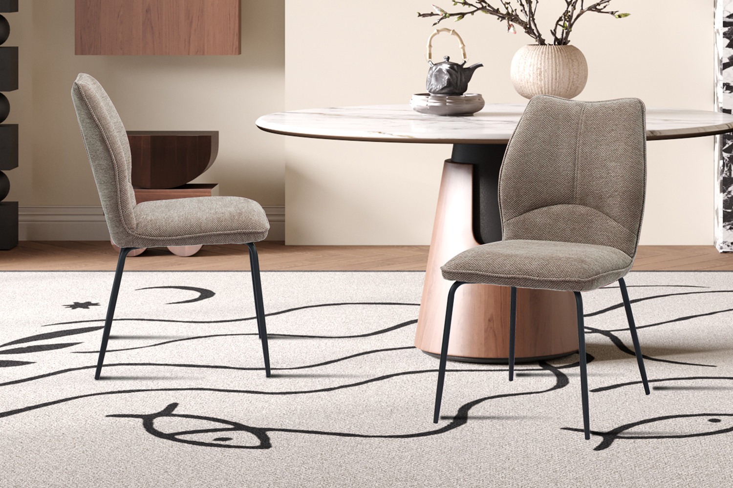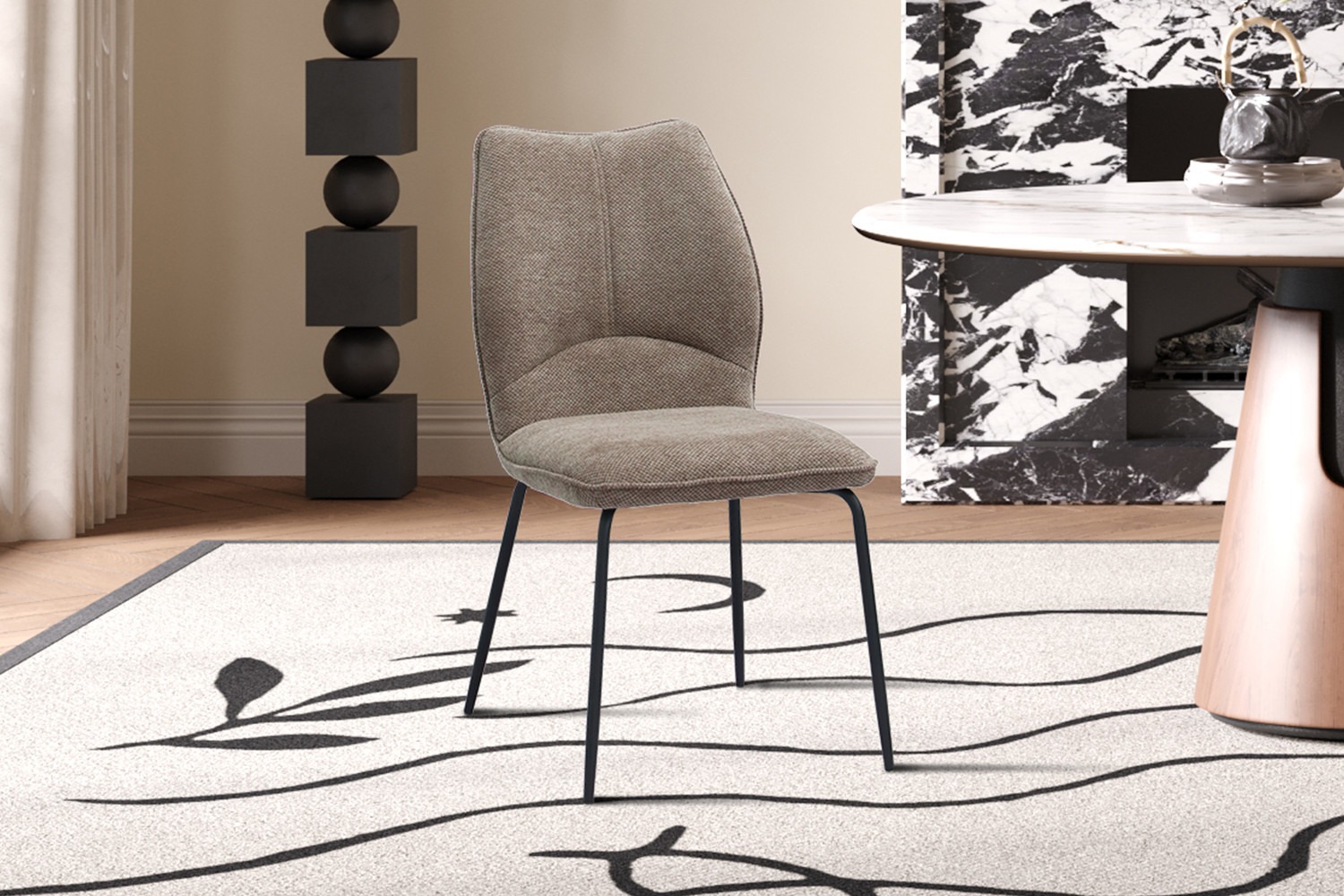 De zandstof stoel is niet alleen stijlvol, maar ook zeer comfortabel. De stoel is ergonomisch ontworpen en biedt optimale ondersteuning tijdens het zitten. Daarom is deze stoel ideaal voor lange avonden tafelen of relaxen in de woonkamer.