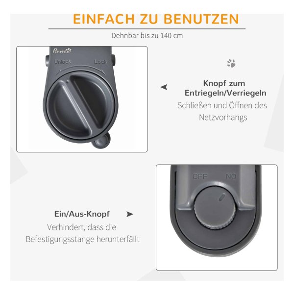 - De aan/uit-knop voorkomt dat de staaf uit het bevestigingssleuf valt, waardoor de veiligheid van uw huisdieren wordt gewaarborgd.