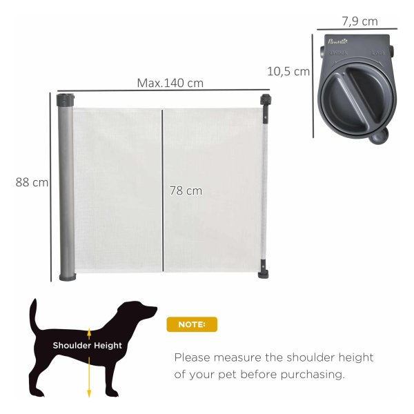 Het uitschuifbare trapbeschermingsrooster van Pawhut is een must-have voor elke huisdiereneigenaar die de veiligheid van zijn geliefde viervoeters wil waarborgen. Met een maximale lengte van 140 cm is dit rooster perfect geschikt voor deuropeningen, gangen, en trappen, waardoor uw huisdieren veilig kunnen rondlopen zonder toegang te krijgen tot gevaarlijke gebieden.