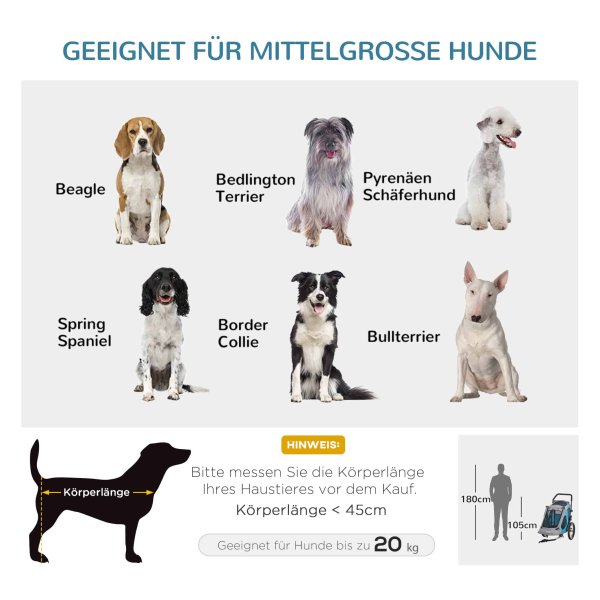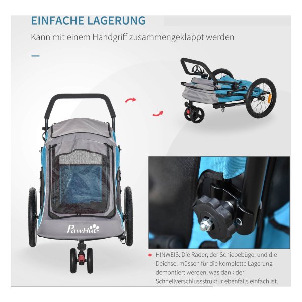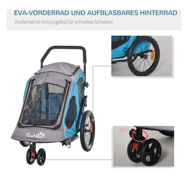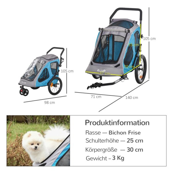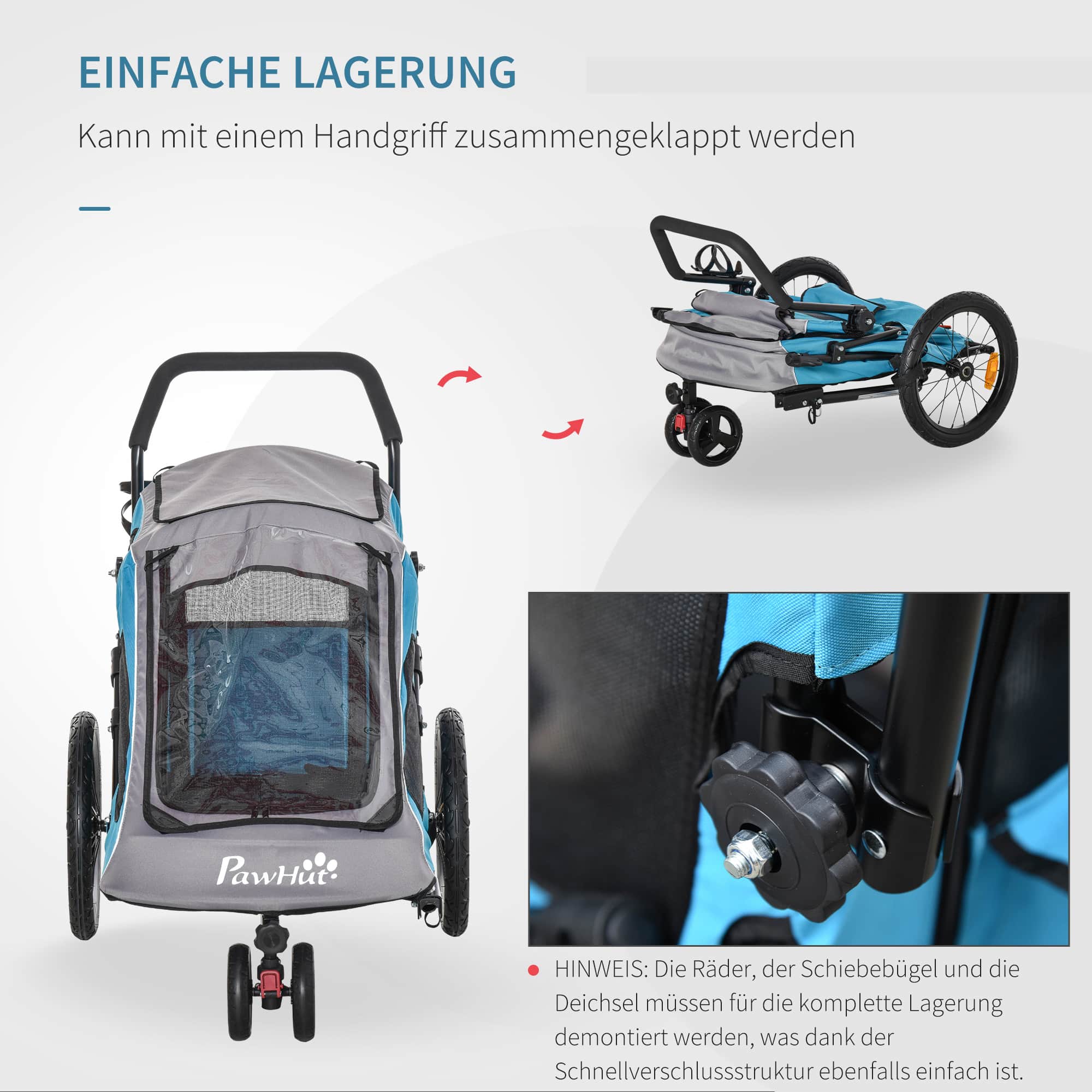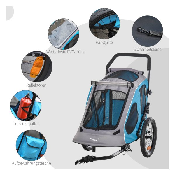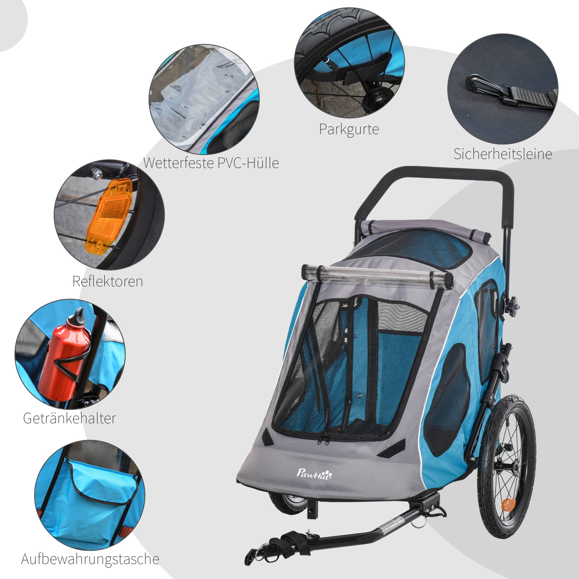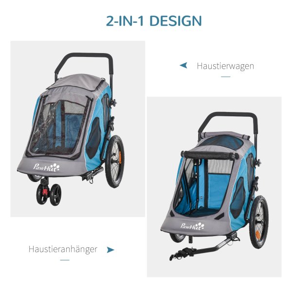 Hondenkar – Pet Fietskar – 2-in-1 Vervoer – Ademend – Blauw