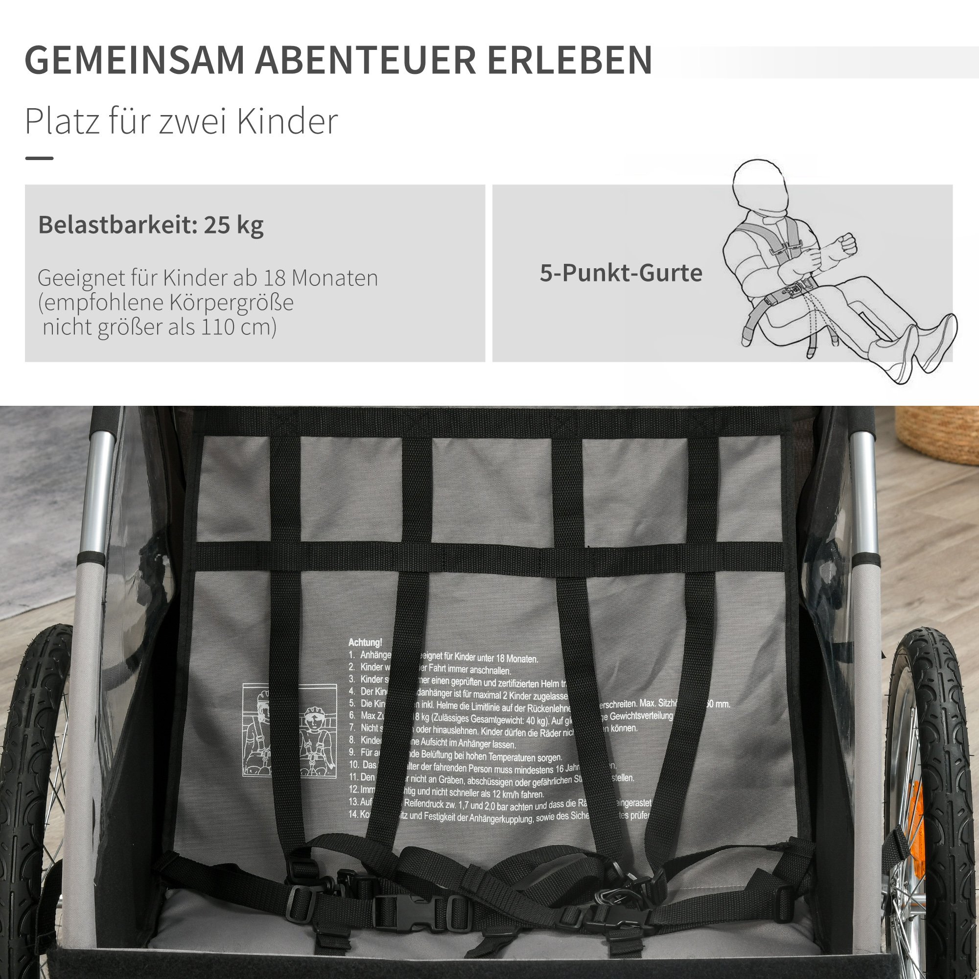 Kinderfietskarwagon – 2-in-1 – opbergzak – Grijs/Zwart