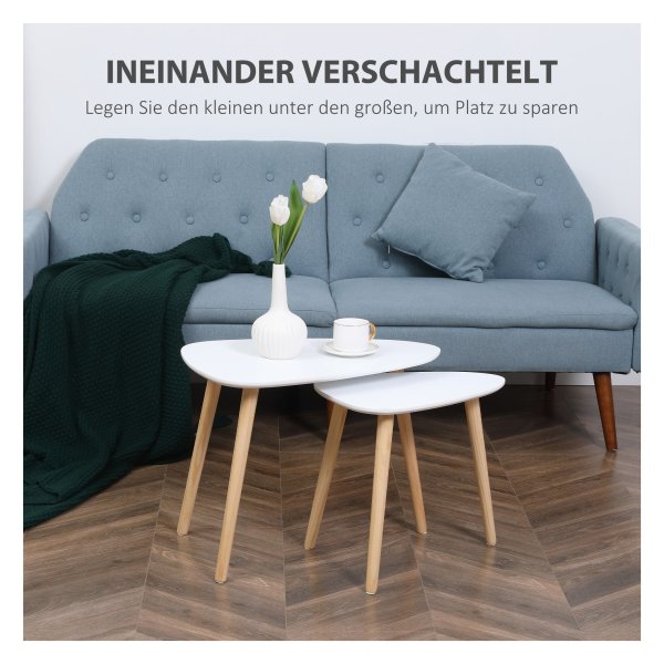 Deze bijzettafels kunnen op een ruimtebesparende manier worden geplaatst wanneer ze niet in gebruik zijn, ideaal voor kleinere ruimtes of wanneer je wat extra flexibiliteit nodig hebt in je interieur.