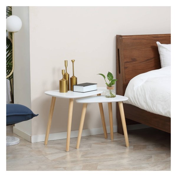 Op zoek naar een trendy toevoeging aan jouw interieur? De bijzettafels van Zaza Home zijn perfect voor jou. Deze set van twee bijzettafels wordt geleverd in een dubbel pakket, waardoor je meteen twee stijlvolle tafels in huis haalt. Het minimalistische ontwerp en de combinatie van wit en dennenhout geven deze bijzettafels een typische Scandinavische uitstraling.
