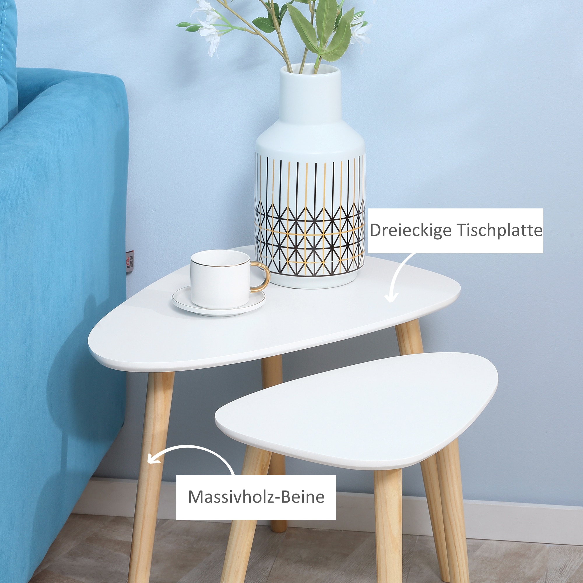 Deze bijzettafels bieden niet alleen een plek om je decoratie tentoon te stellen, maar ook om boeken, tijdschriften of drankjes op te bergen. De stabiele benen gemaakt van dennenhout zorgen niet alleen voor een Scandinavische look, maar ook voor stabiliteit en duurzaamheid.