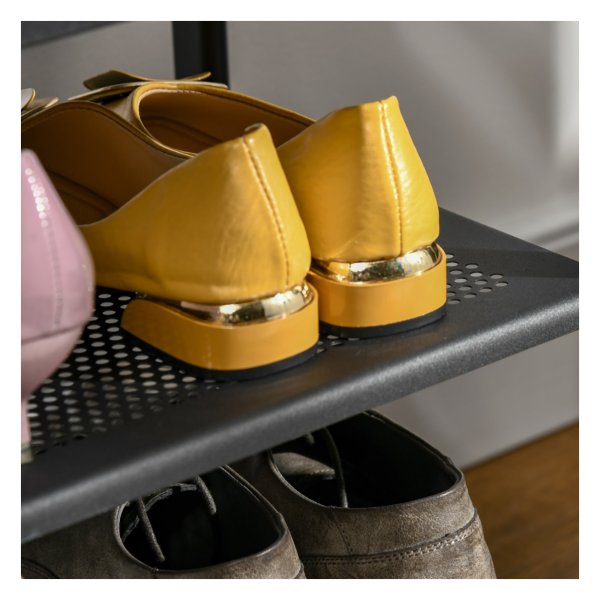 Dit stijlvolle en ruimtebesparende schoenenrek is een absolute must-have voor iedereen die op zoek is naar een handige opbergoplossing voor hun schoenen. Met een strak en modern design past dit zwarte schoenenrek perfect in elke entree, slaapkamer of garderobe. Dit rek combineert functionaliteit met elegantie, waardoor het niet alleen een praktisch item is, maar ook een stijlvolle toevoeging aan je interieur.