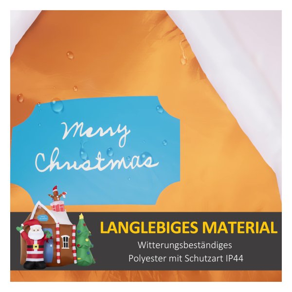 Dit opblaasbare kersthuis is niet alleen een lust voor het oog, maar ook zeer praktisch in gebruik. Het materiaal is robuust en kan lichte neerslag weerstaan, zodat je het huis zowel binnen als buiten kunt gebruiken. Voor extra stabiliteit worden zes pinnen en twee klemmen meegeleverd.