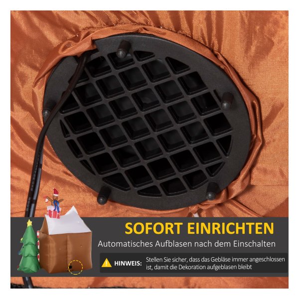 Het opzetten van dit opblaasbare kersthuis is een fluitje van een cent dankzij de meegeleverde elektrische ventilator. Binnen enkele ogenblikken is het huis opgeblazen en klaar om bewonderd te worden. De LED-verlichting die in het huis is ingebouwd zorgt voor een warm en sfeervol licht, waardoor jouw tuin direct wordt omgetoverd tot een magische kerstomgeving.