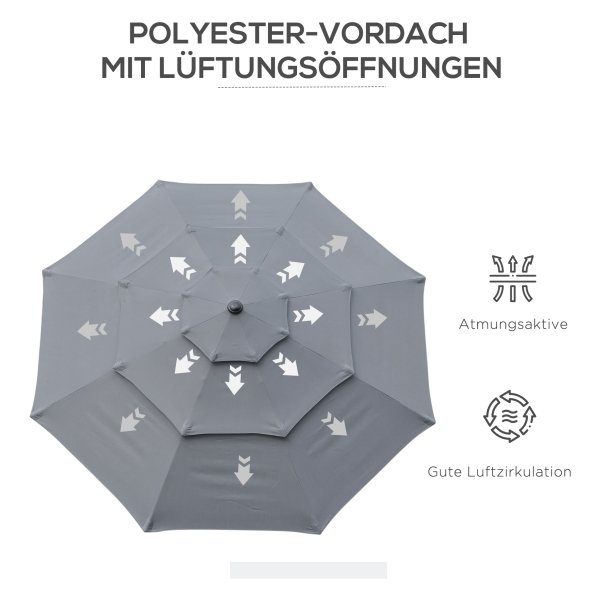 Met het draaibare dak van de Parasol kun je de schaduw gemakkelijk aanpassen aan de positie van de zon. Hierdoor geniet je op elk moment van de dag van een comfortabele en beschutte plek in je tuin. Het waterafstotende en UV-bestendige doek beschermt je tegen regen en schadelijke straling.