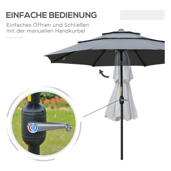 De Parasol is niet alleen functioneel, maar ook elegant en duurzaam. Dankzij het hoogwaardige materiaal gaat deze parasol lang mee en biedt hij jarenlang plezier in je tuin. Met de handige draaifunctie en gemakkelijke bediening is deze parasol een essentiële toevoeging aan je buitenruimte.