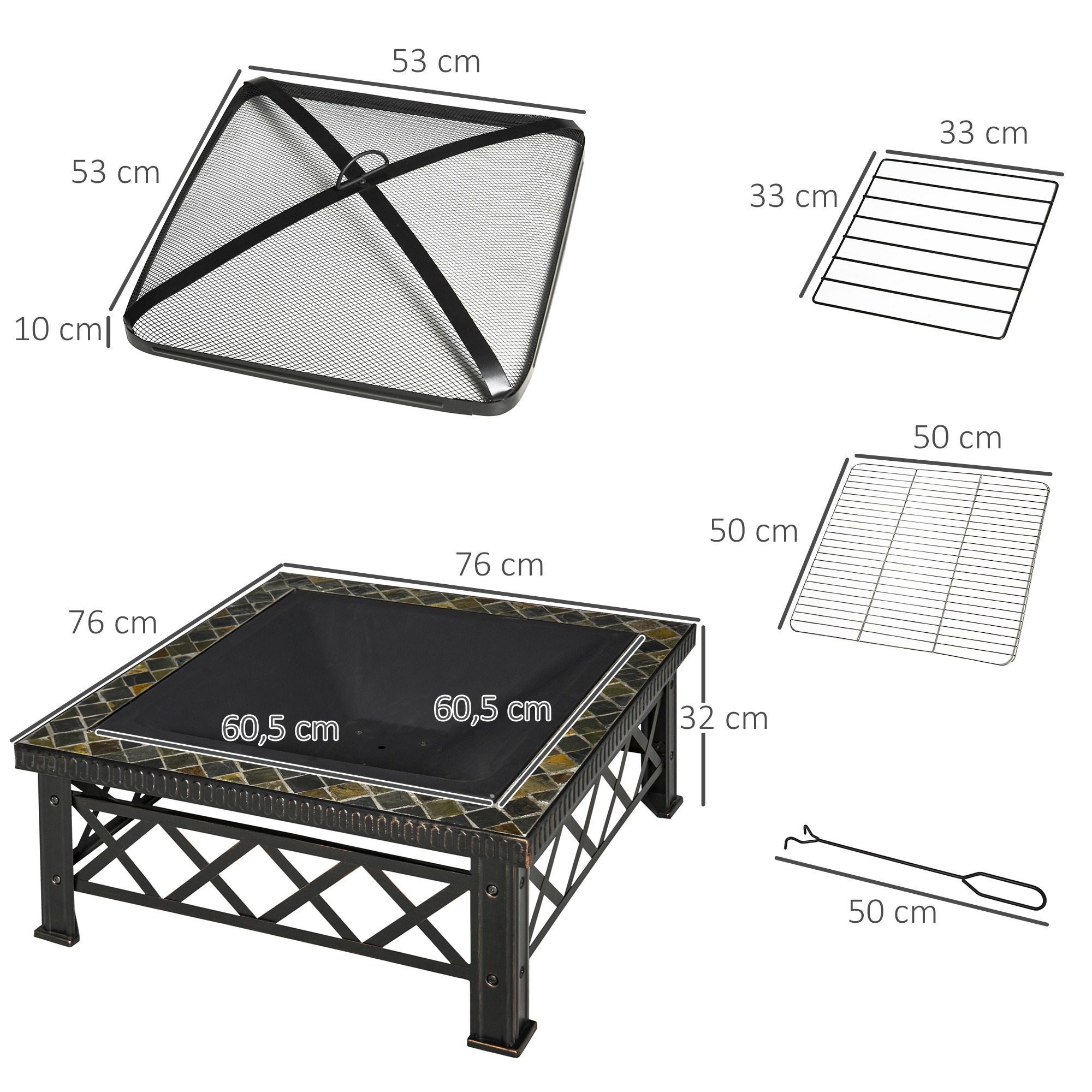 De tuinhaard is geconstrueerd uit stevig staal voor optimale betrouwbaarheid en duurzaamheid. Het basisbekken is bestand tegen extreme hitte, zodat je met een gerust hart kunt genieten van de warmte en gezelligheid die de haard biedt. Daarnaast is de haard voorzien van een draadrooster dat bescherming biedt tegen zowel hitte als vonken, waardoor je in alle veiligheid kunt genieten van een gezellig vuurtje in de avond.