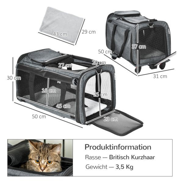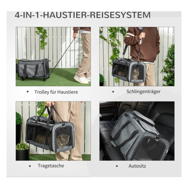 - Te gebruiken als huisdierentrolley, draagtas en autostoeltje voor huisdieren