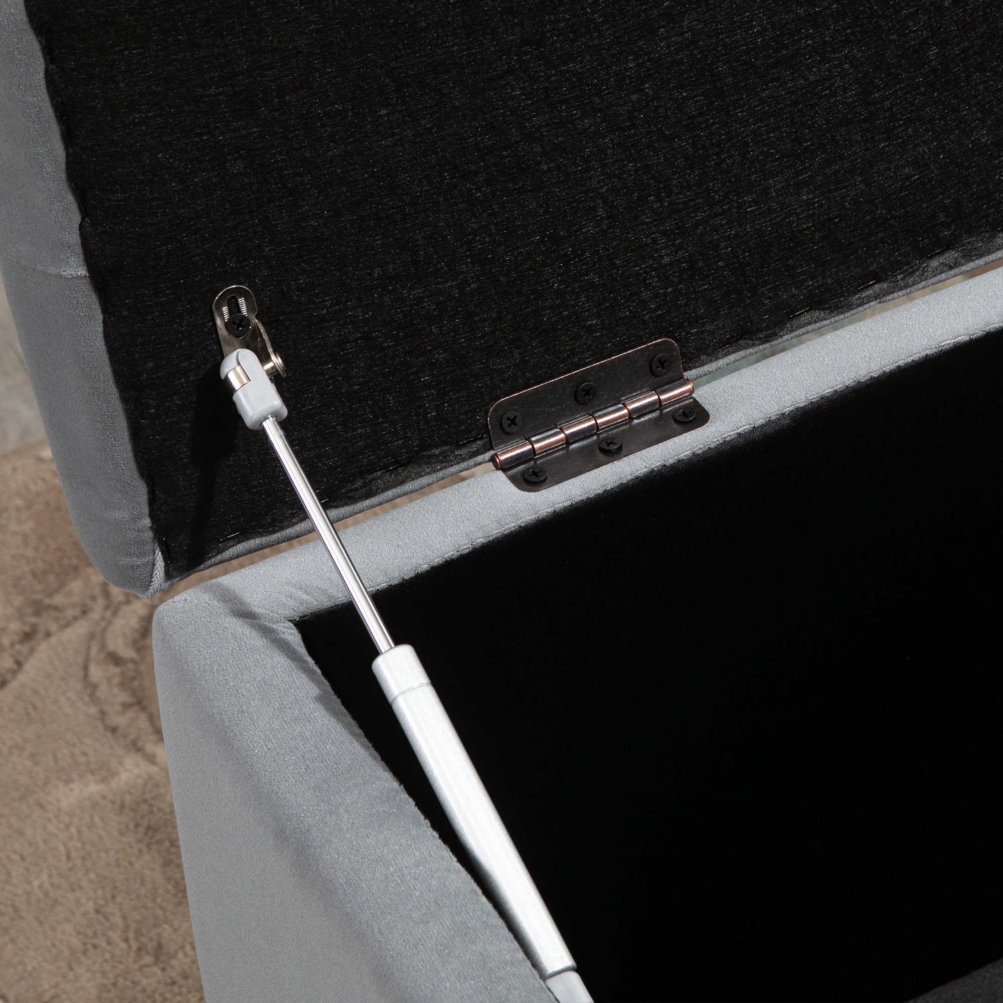 De opbergbuggy heeft een lichtgrijze kleur en is gemaakt van hoogwaardige materialen zoals rubberhout, schuim en flanel. De grote opbergbank heeft een draagvermogen van 130 kg, terwijl de kleinere opbergruimtestoelen elk 70 kg kunnen dragen.