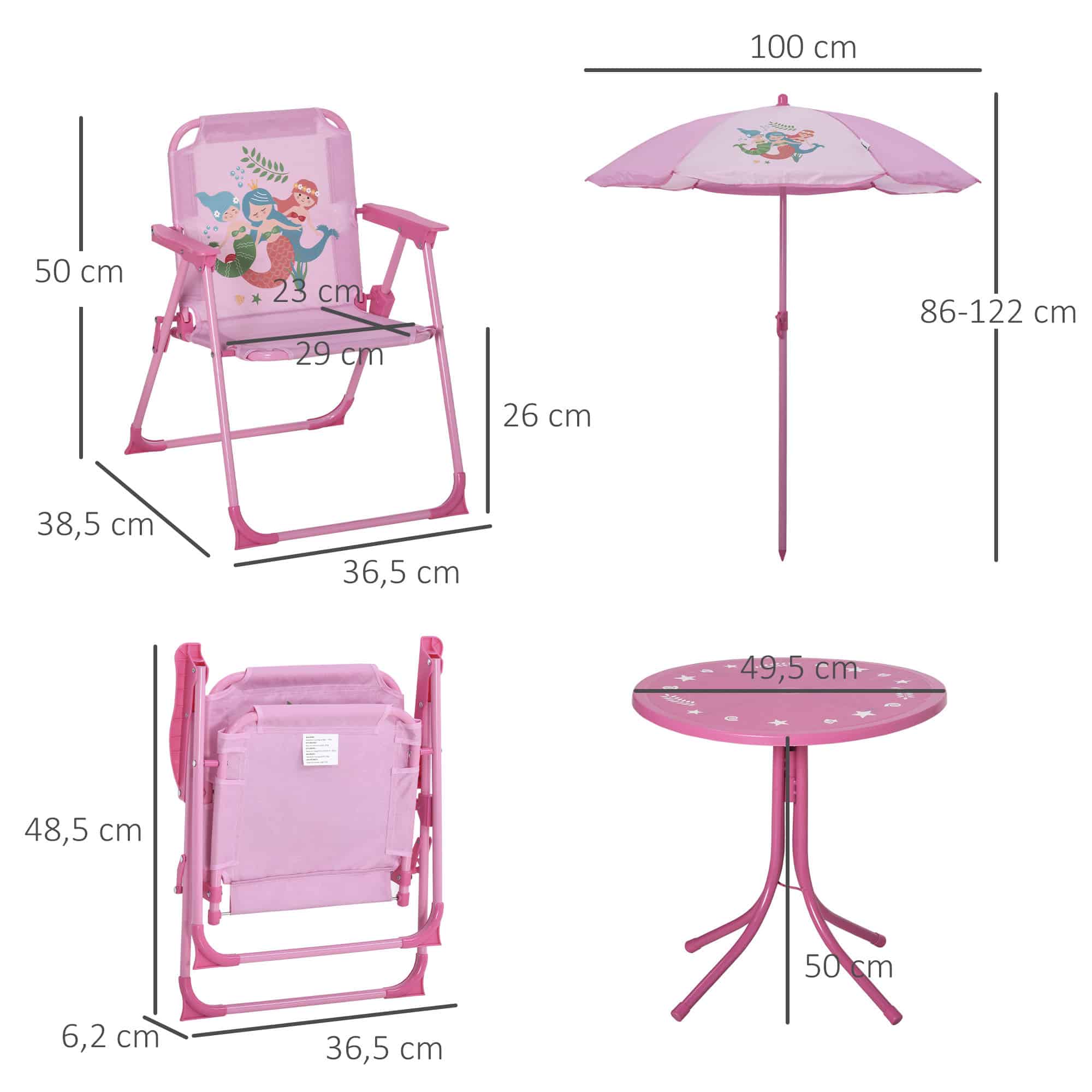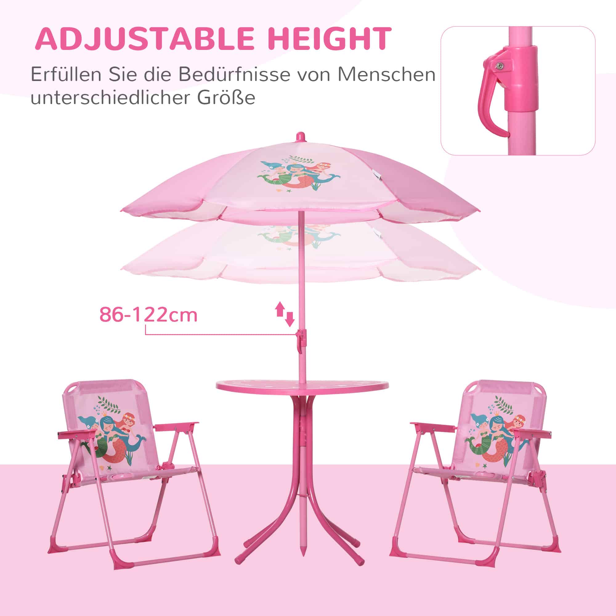 - 4-delige set: Bestaande uit een tafel, two stoelen en een parasol in een schattige roze kleur, hebben je kinderen alles wat ze nodig hebben voor een gezellig samenzijn in de tuin.
