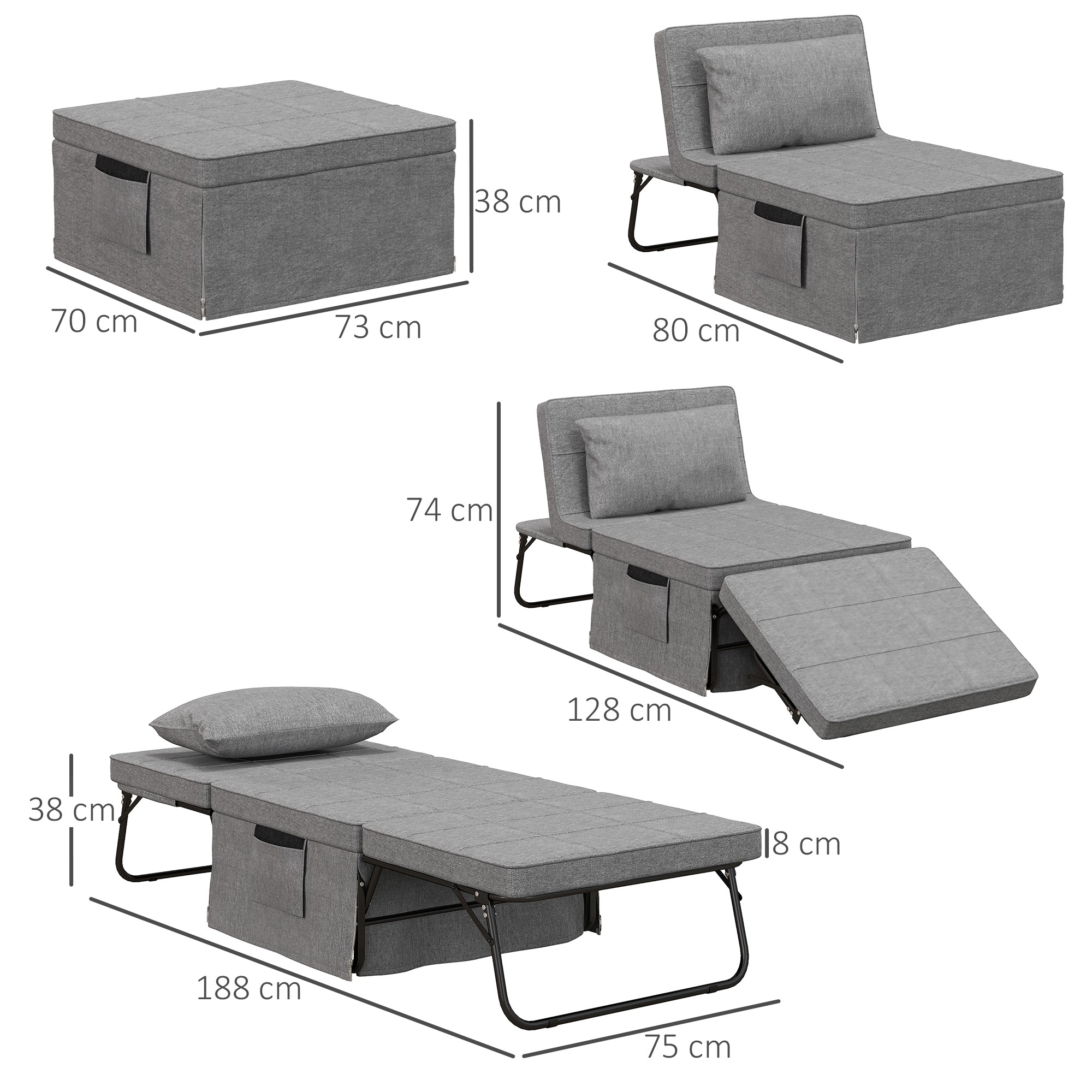 - Verstelbare rugleuning en voetsteun voor veelzijdig gebruik als bed, sofa, fauteuil en kruk