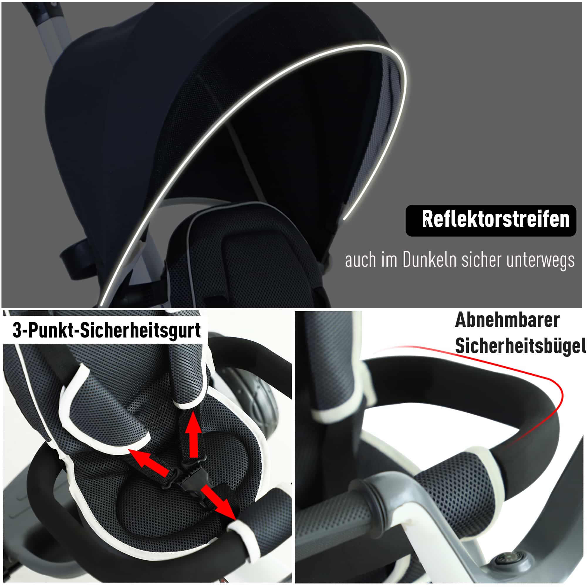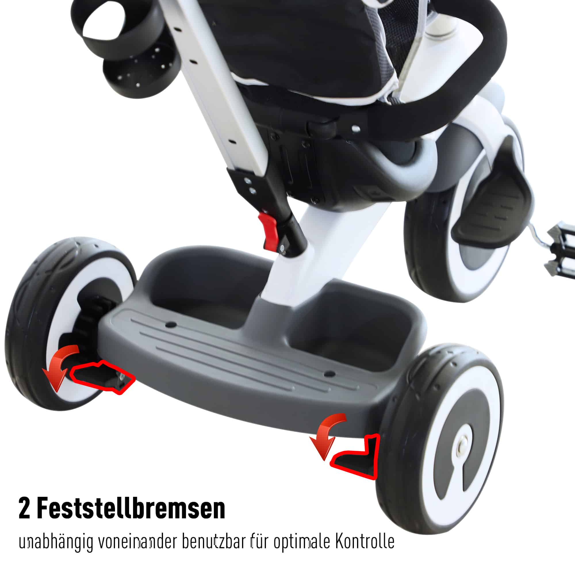 Veiligheid staat voorop bij deze kinderdriewieler. Met een driepuntsgordel en afneembare veiligheidsbeugel kunnen kinderen veilig plaatsnemen in de driewieler en voorkomt dit dat ze eruit kunnen vallen. Daarnaast zorgen de twee vastzetremmen aan de achterkant ervoor dat de driewieler altijd op zijn plaats blijft. De ergonomisch gevormde en in hoogte verstelbare duwstang met slipvaste handgrepen zorgt ervoor dat ouders de driewieler altijd onder controle hebben.
