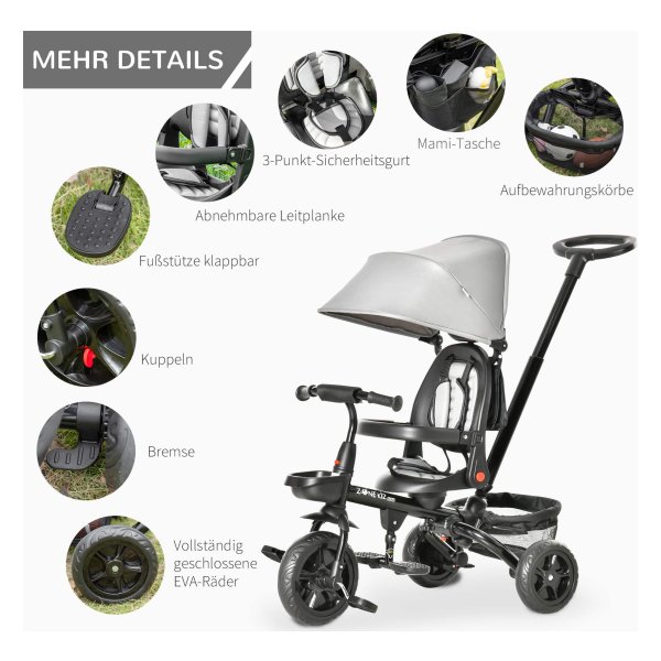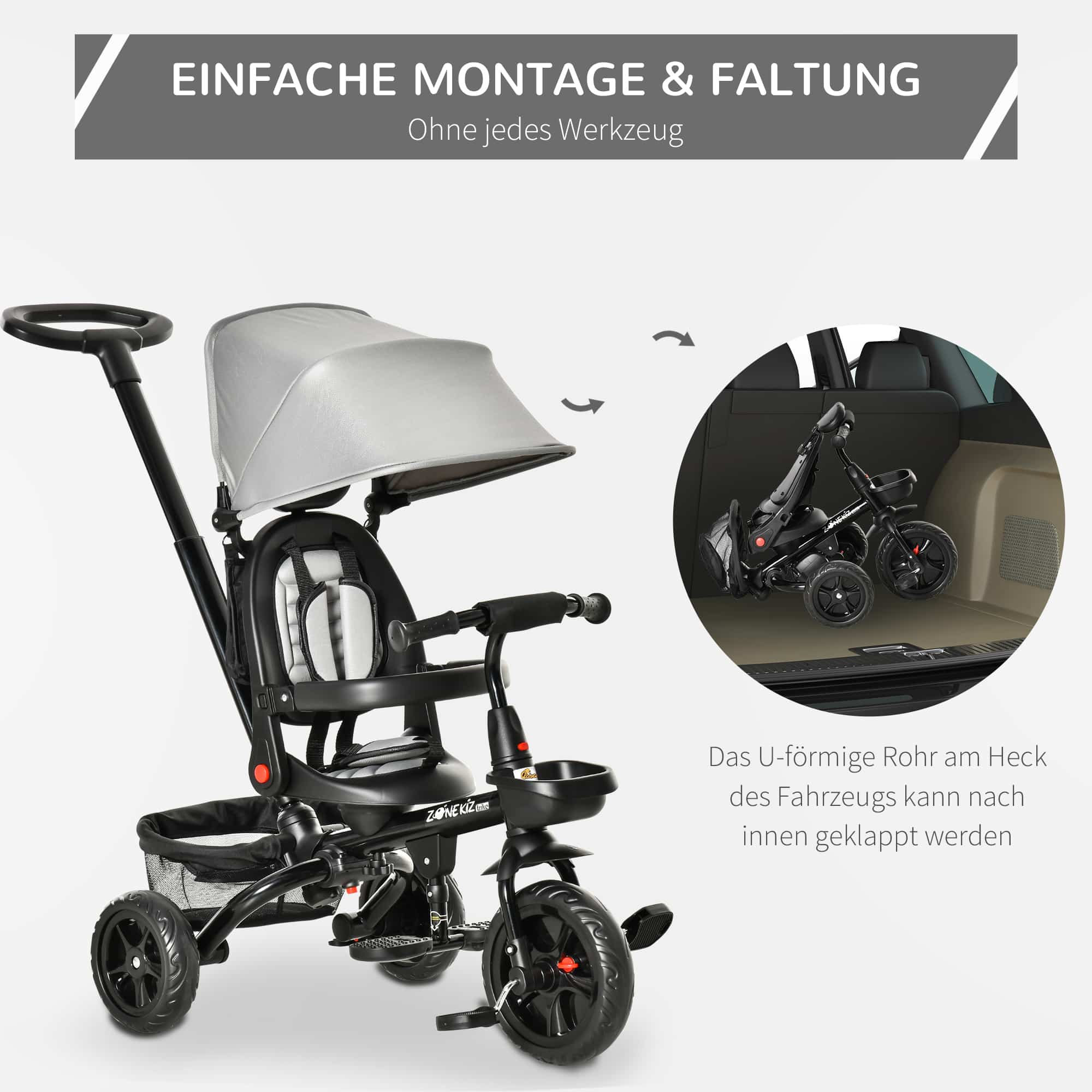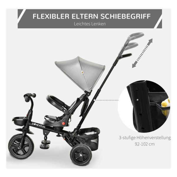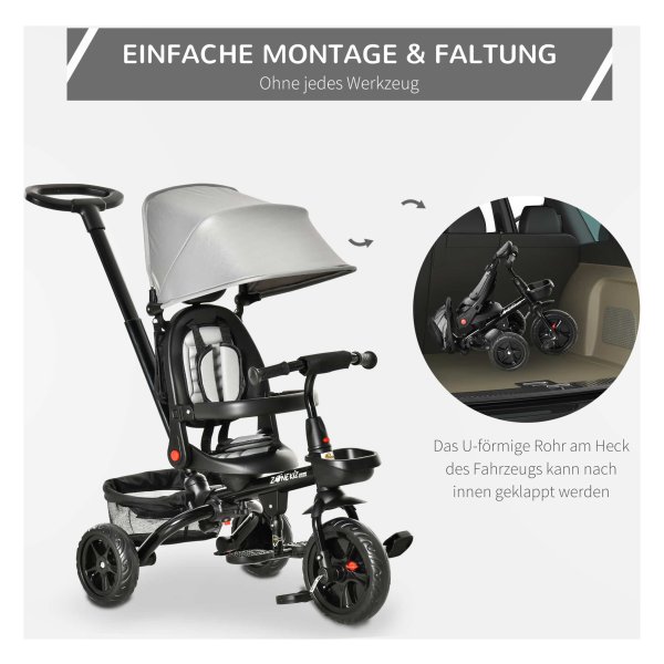 Deze driewieler is snel en eenvoudig te monteren en te demonteren zonder dat gereedschap nodig is. De U-vormige buis aan de achterkant van de driewieler kan worden ingeklapt voor handig opbergen. Met afmetingen van 111,5 cm lang, 52 cm breed en 98 cm hoog, is deze driewieler geschikt voor kinderen van 1-5 jaar oud en met een maximumgewicht van 25 kg. Kortom, deze opvouwbare en afneembare driewieler in het grijs is de ideale keuze voor jou en je kind!
