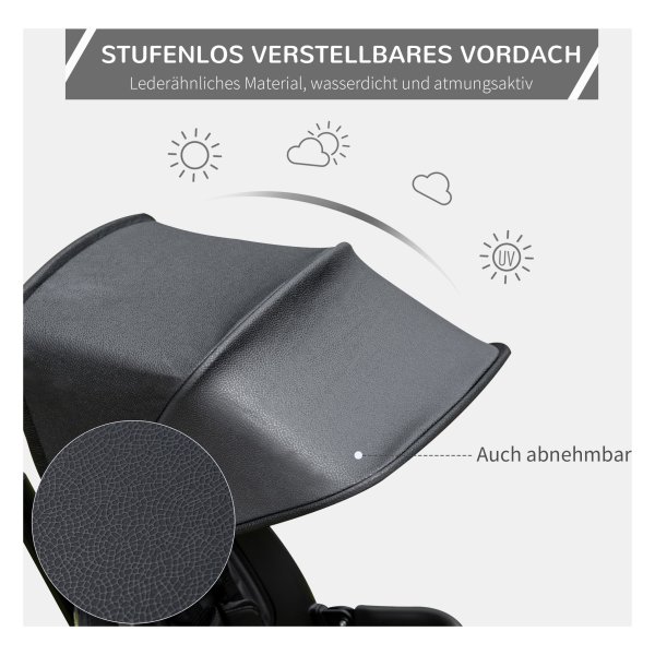 - Volledig aanpasbaar met verstelbare kap, opvouwbare voetensteun en aanpasbare rugleuning