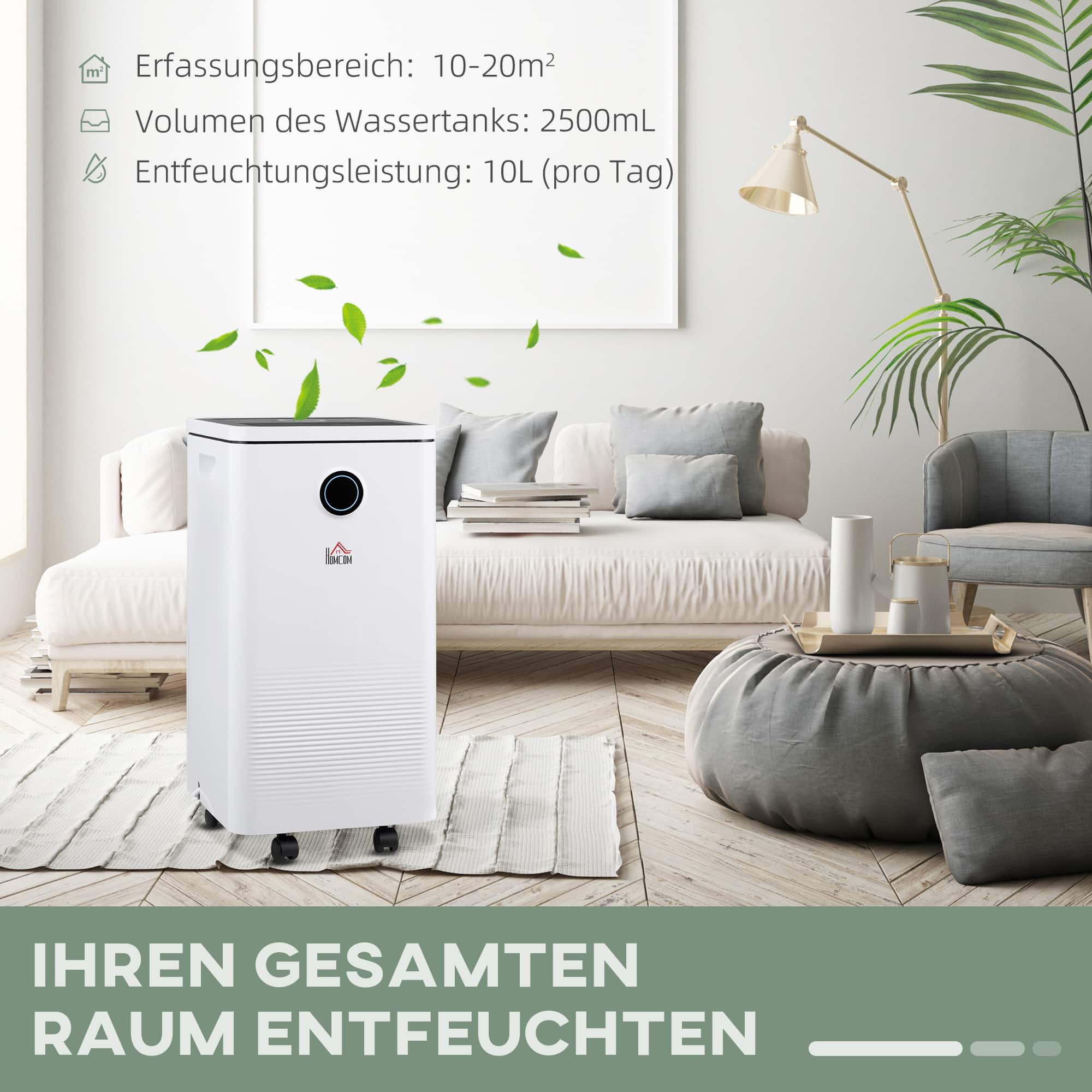 Compact en krachtig: deze kleine ontvochtiger is geschikt voor kamers met een oppervlakte van 10 tot 20 m², terwijl het tot 10l is water per dag uitgerust uit de lucht (op basis van 80 % relatieve vochtigheid en 30 ° C kamertemperatuur)