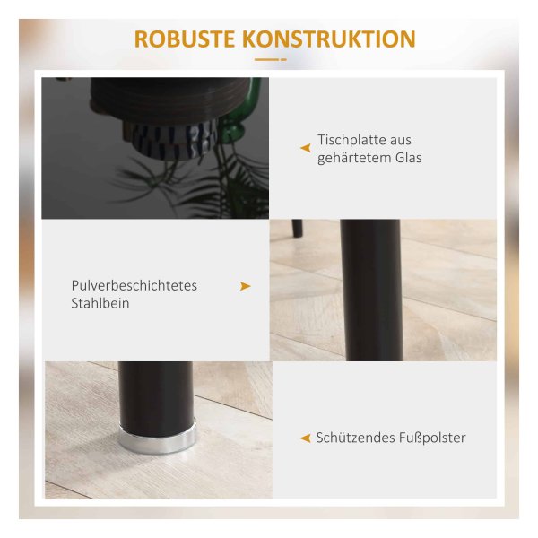- Met een robuust stalen frame, gehard glas en een synthetisch leren bekleding is deze set duurzaam en eenvoudig te onderhouden.