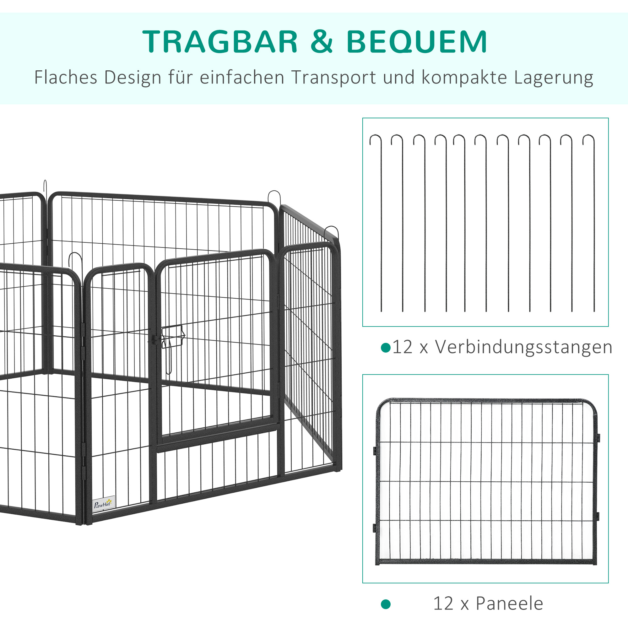 De Rensville hondenren is uitgevoerd in een stijlvolle zwarte kleur en past perfect in elke ruimte. De stevige materialen zorgen voor duurzaamheid en bestendigheid tegen intensief gebruik. Met afmetingen van 80B x 60H cm per paneel en een deur van 39B x 44,5H cm, biedt de hondenren voldoende ruimte voor beweging en comfort voor je huisdier.