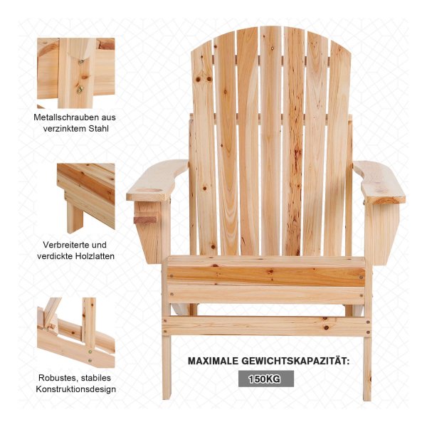 Deze Adirondack stoelen zijn ideaal voor lange ontspannen momenten in de buitenlucht. De hoge rugleuning zorgt voor de nodige ondersteuning en draagt bij aan duurzame ontspanning. Leun achterover, geniet van het comfort en laat de drukte van de dag van u afglijden.