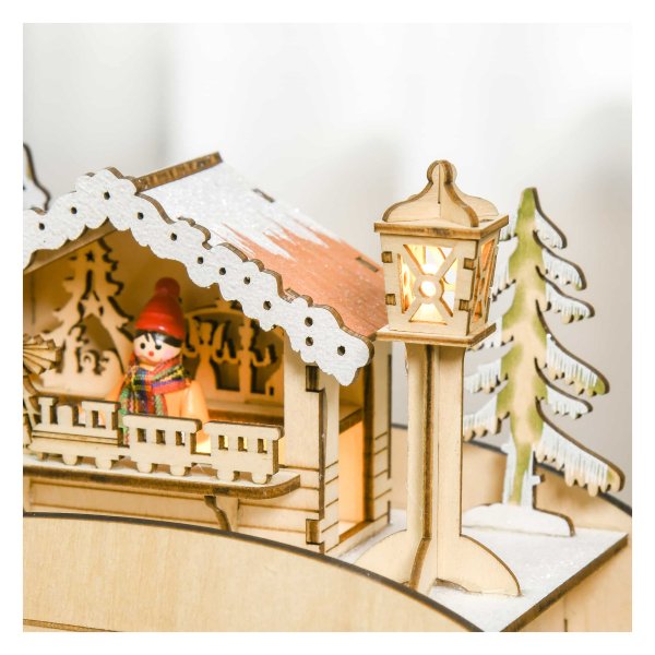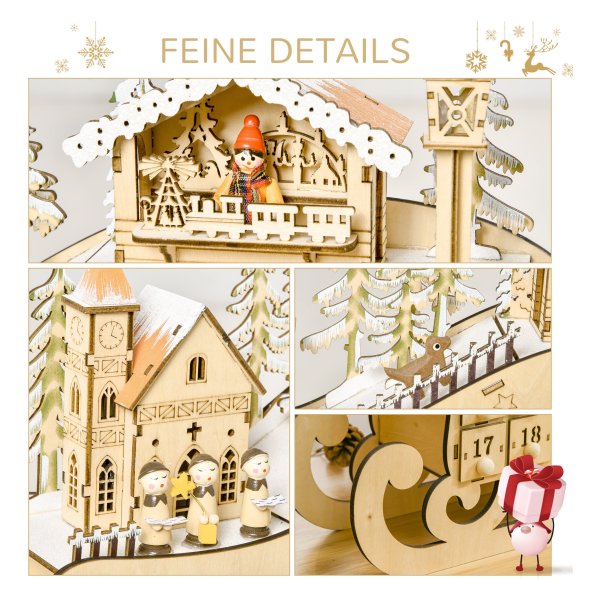Bullet Point 1 | Klassiek kerstonderwerp: deze houten kalender met kerk, koor, stevige bomen en lichten is een creatieve manier om de kerststemming in het appartement te brengen met Kerst Op het toneel |