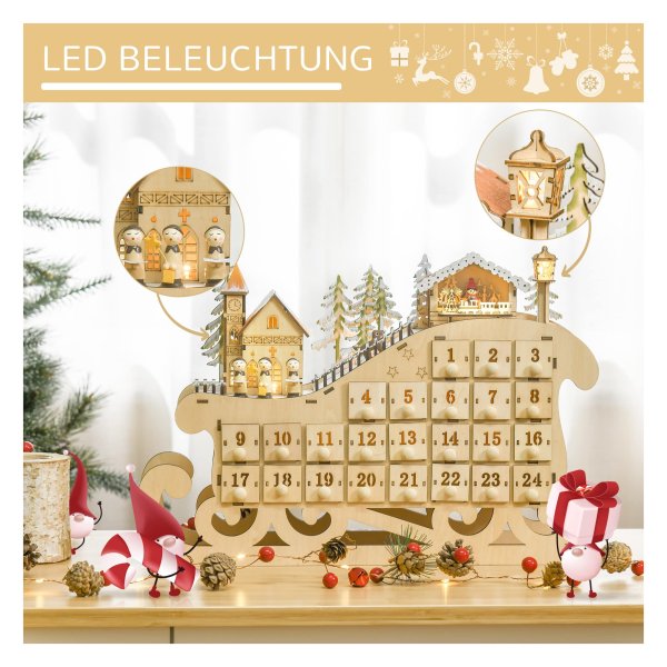 Adventskalender – Zaza Home – LED verlichting – Slee vorm – Rood