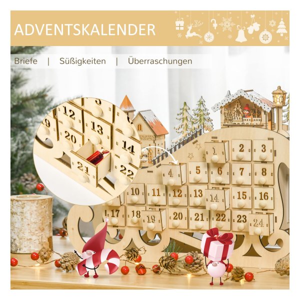 Op zoek naar een unieke manier om af te tellen naar Kerstmis? De adventskalender van Zaza Home is de perfecte toevoeging aan jouw feestelijke decoratie. Laat je verrassen door deze prachtige slee-vormige kalender met LED-verlichting in een feestelijke rode kleur. Met 24 verrassingen om elke dag af te tellen, zal deze adventskalender zeker zorgen voor extra magie en opwinding tijdens de feestdagen.