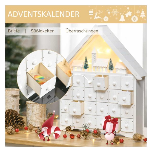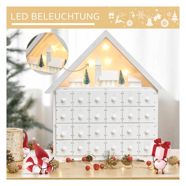 Adventskalender – Zaza Home – 24 lades – LED-verlichting – Wit