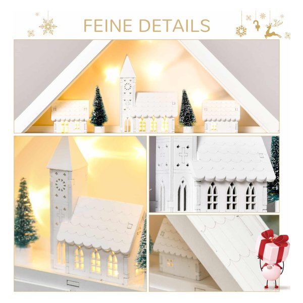 De adventskalender is gemaakt van hoogwaardig multiplex en heeft een elegant ontwerp met een dorp en kerstboom patroon. De ingebouwde LED-lichten verlichten de kerstscĆØne en zorgen voor een magische ambiance in huis. Elke lade biedt ruimte voor leuke verrassingen, zoals notities en snoep, waardoor deze kalender perfect is voor zowel kinderen als volwassenen.